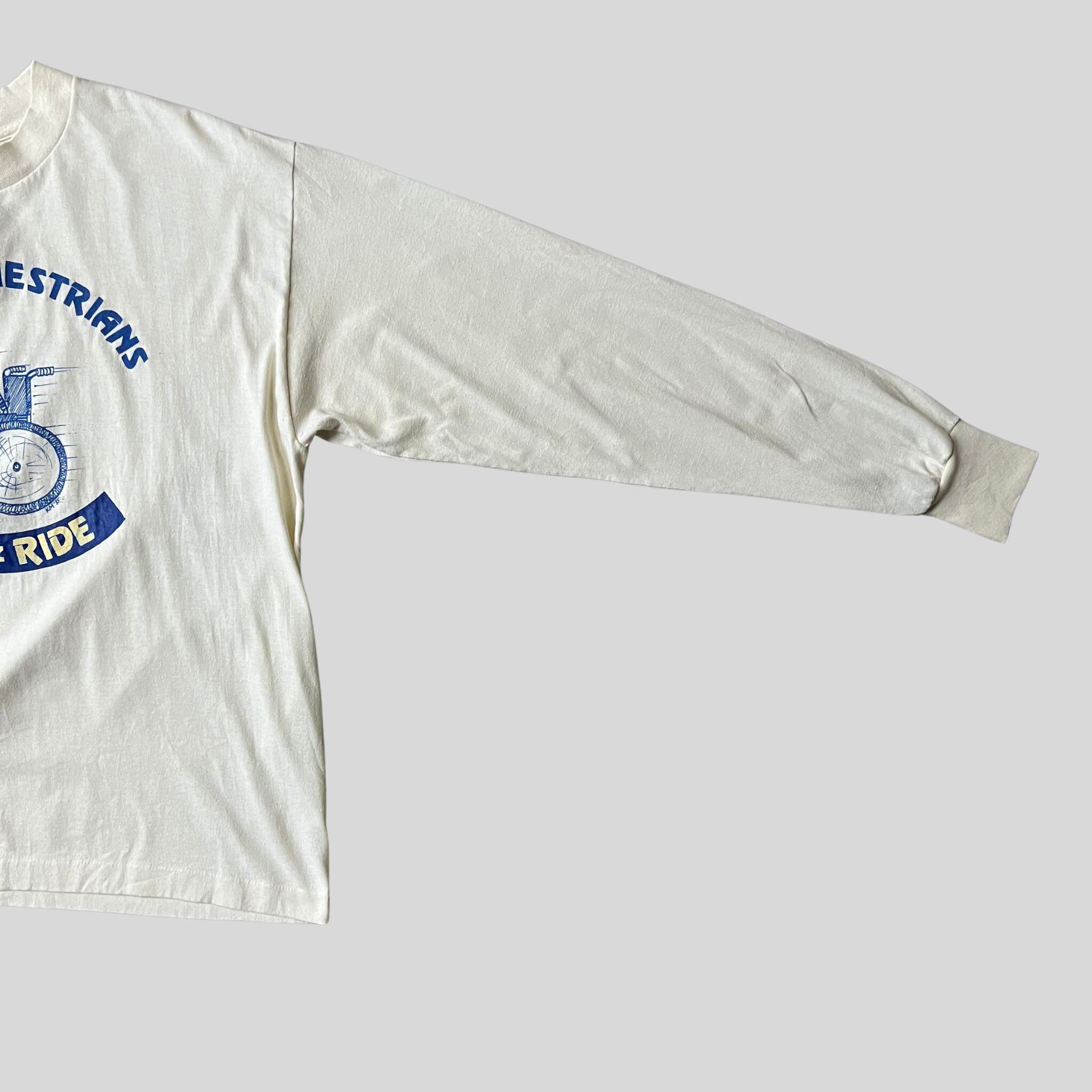 90s USA製 長袖Tシャツ 競馬 ホワイト HEF-T Tshirt