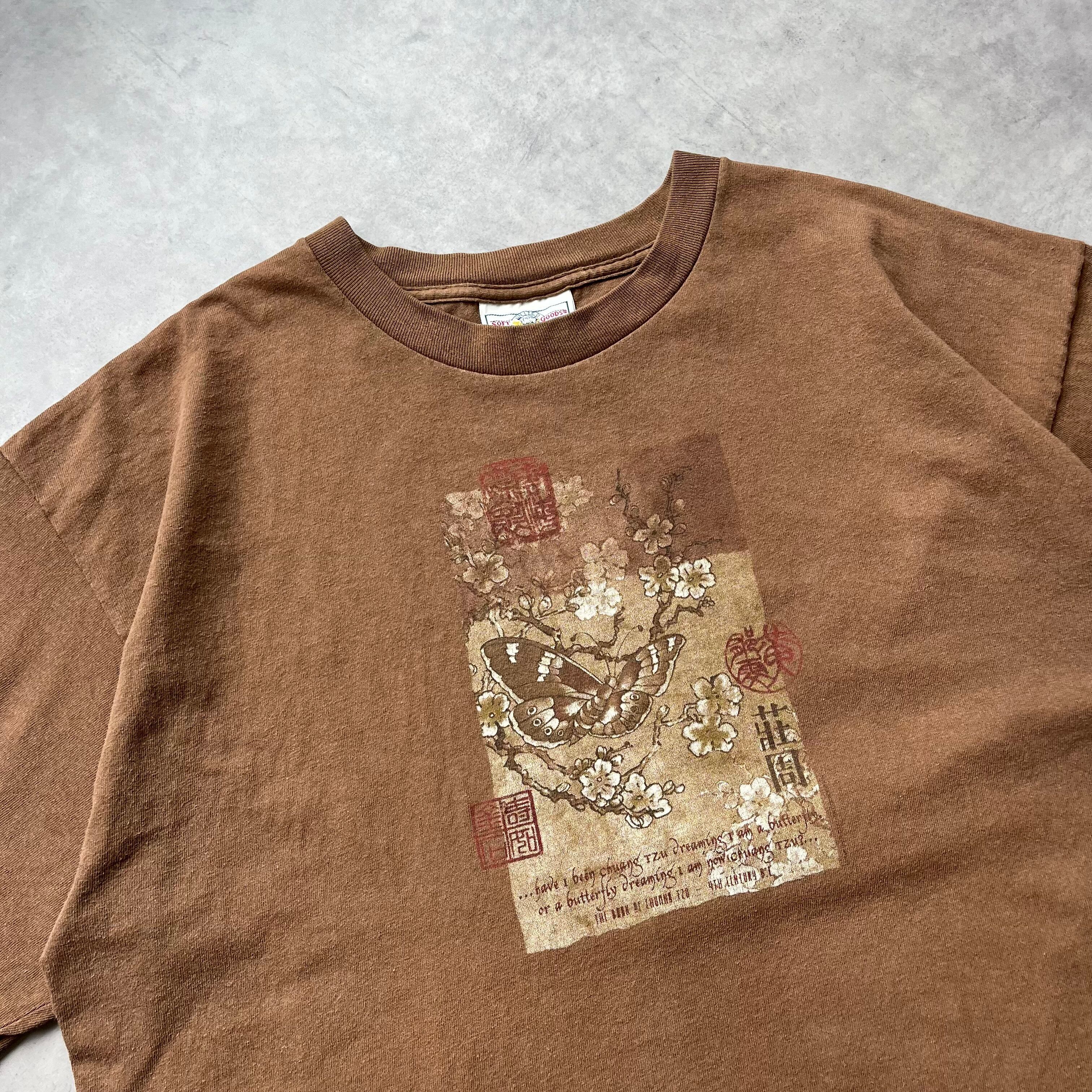 90s USA製 Tシャツ 蝶 ブラウン soft goods Tshirt