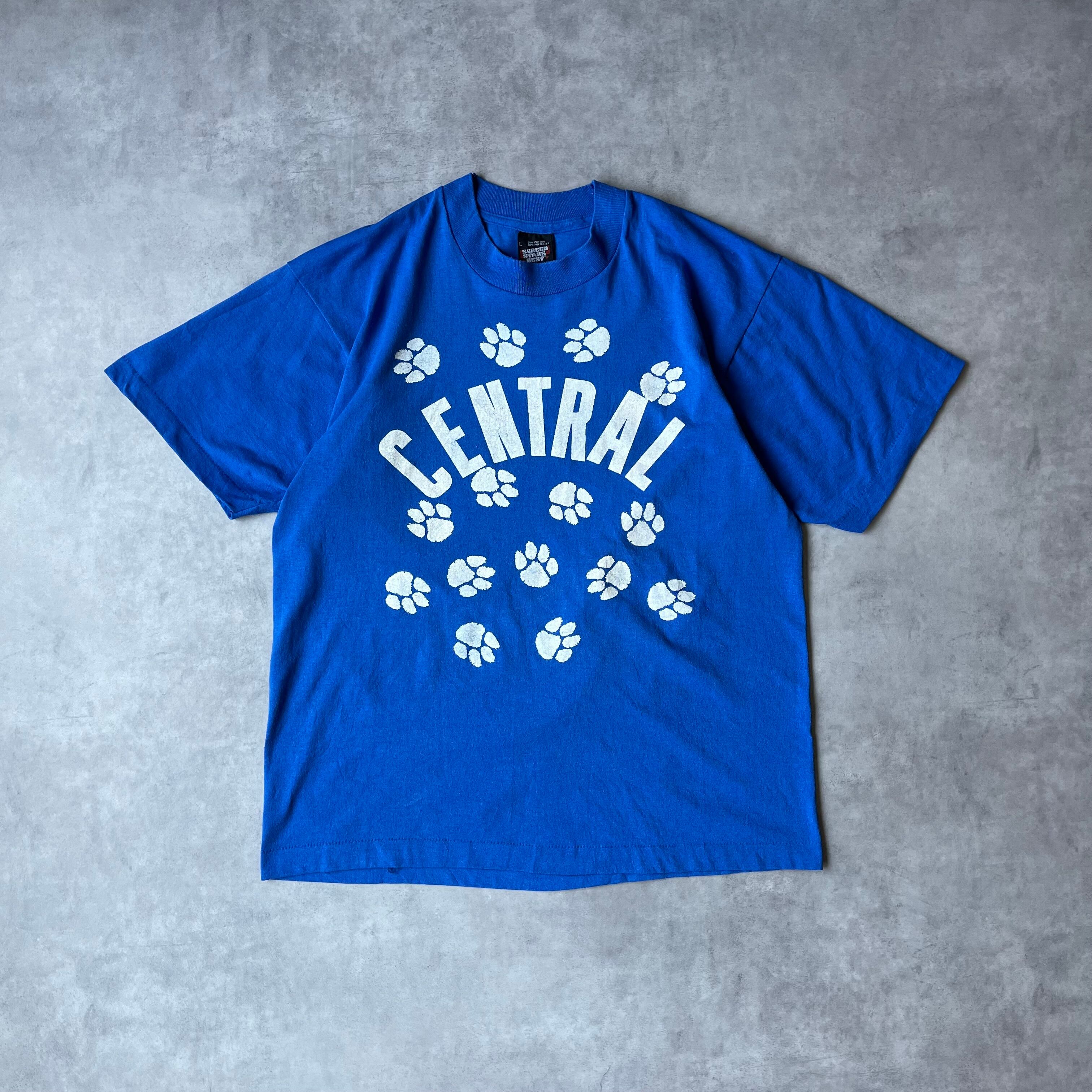 90s USA製 スクリーンスターズ Tシャツ 肉球 カレッジロゴ ブルー SCREEN STARS Tshirt