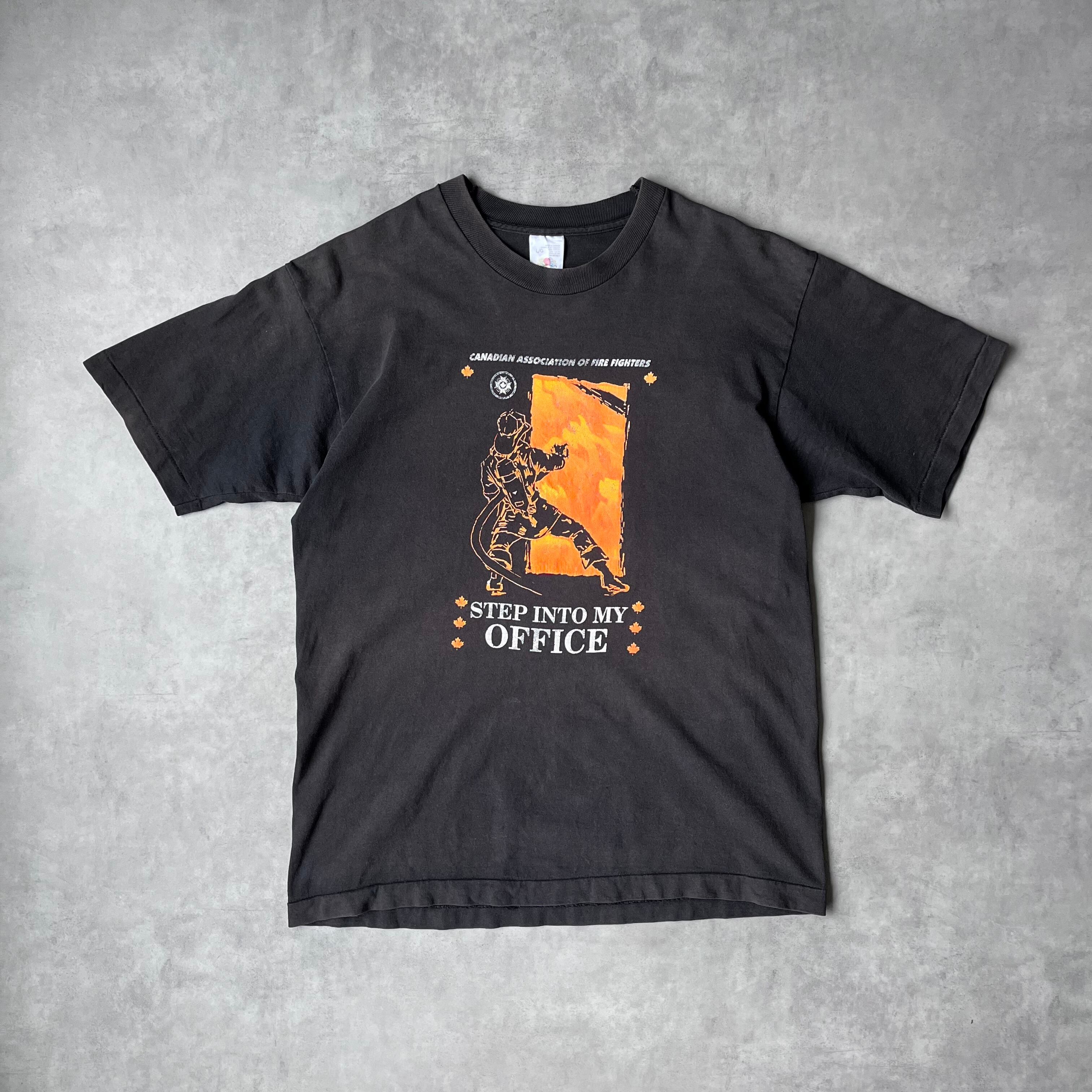 90s カナダ製 フルーツオブザルーム Tシャツ 消防士 ブラック Tshirt