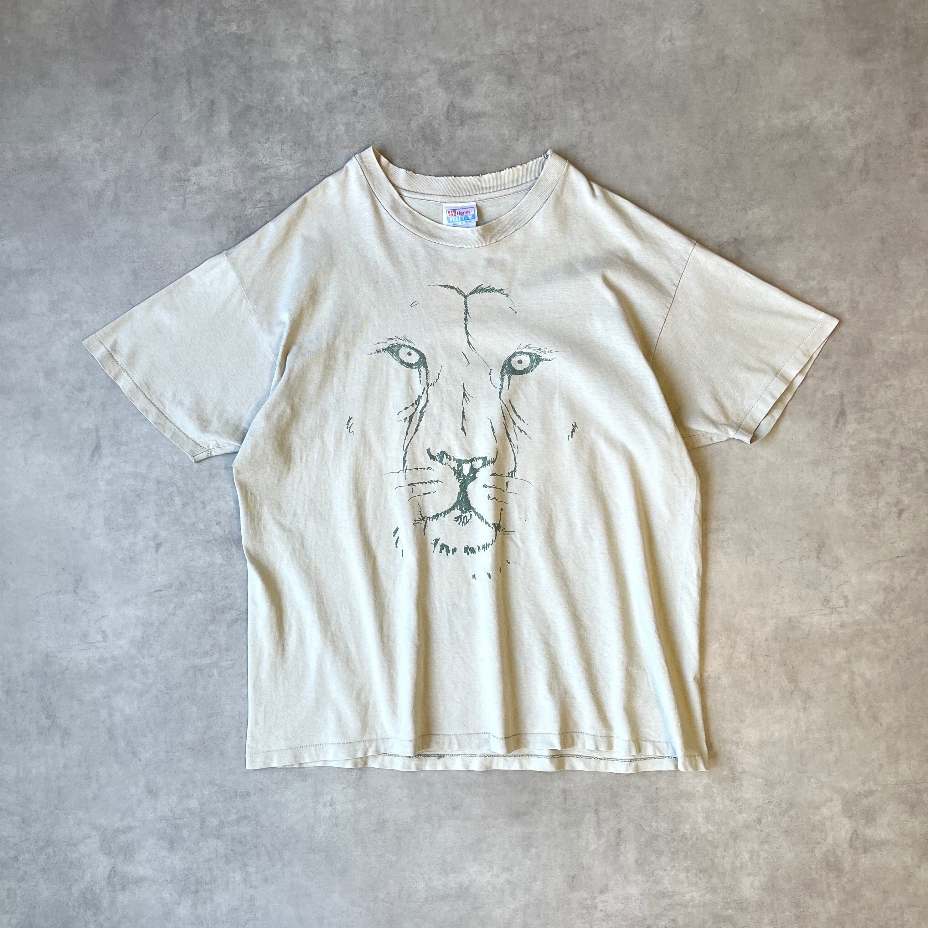 90s ヘインズ Tシャツ アニマルプリント ライオン ベージュ Hanes Tshirt