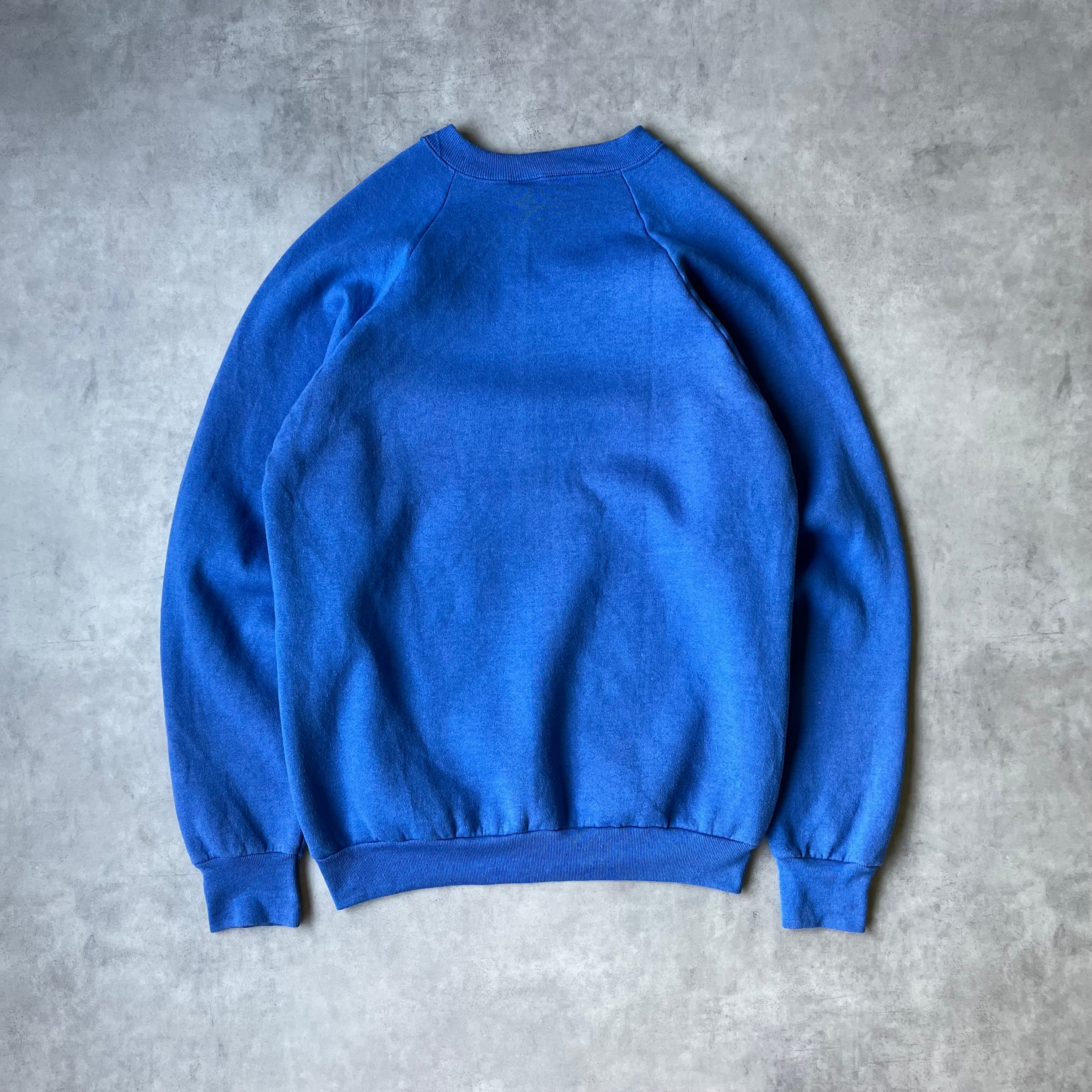 【80s USA製】フルーツオブザルーム ラグランスウェット 企業ロゴ ブルー Fruit of the Loom sweat