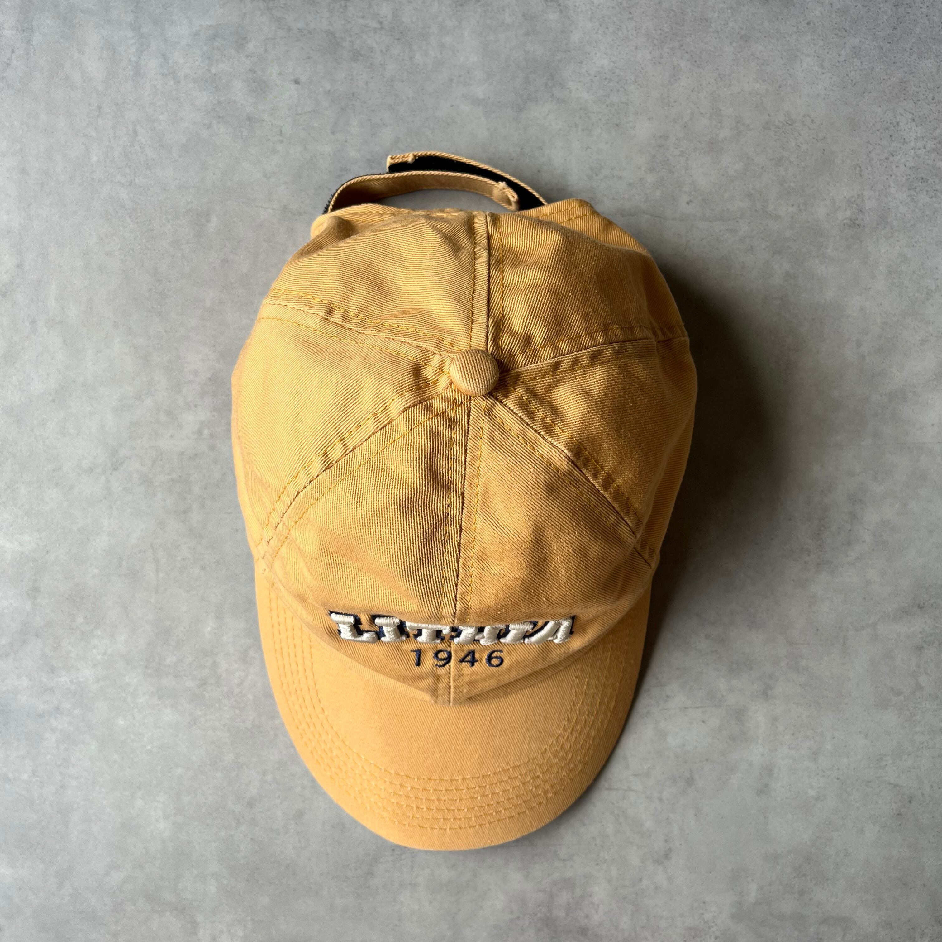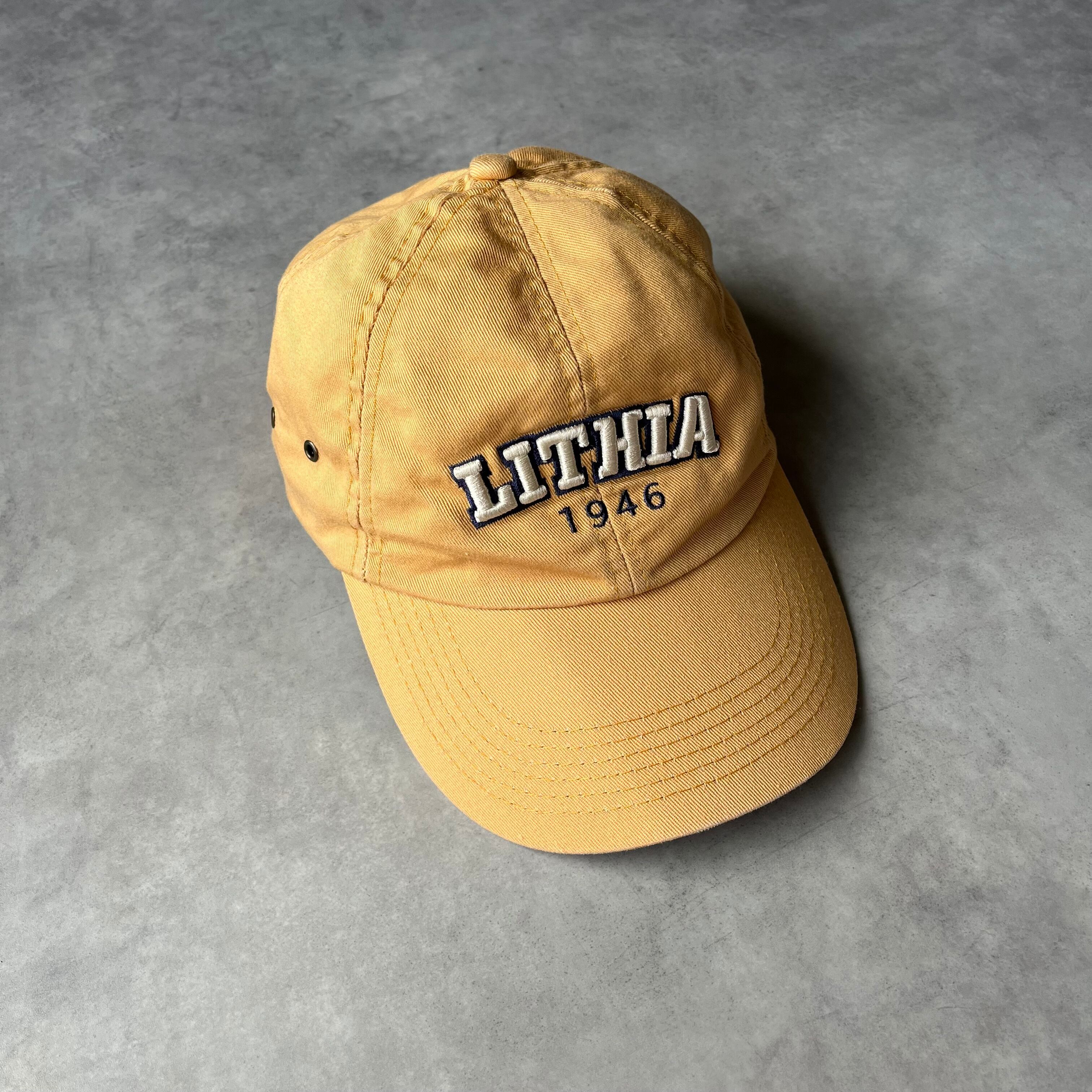 アメリカの自動車販売会社「Lithia Motors」の企業ロゴが刺繍された、鮮やかなイエローの6パネルキャップです。 フロントには「LITHIA 1946」と立体感のある刺繍が施されています。頭回りは52〜60cmで調整可能。サイドには通気性を高めるアイレットが配された、クラシックなワーク・スポーティスタイルの一品です。