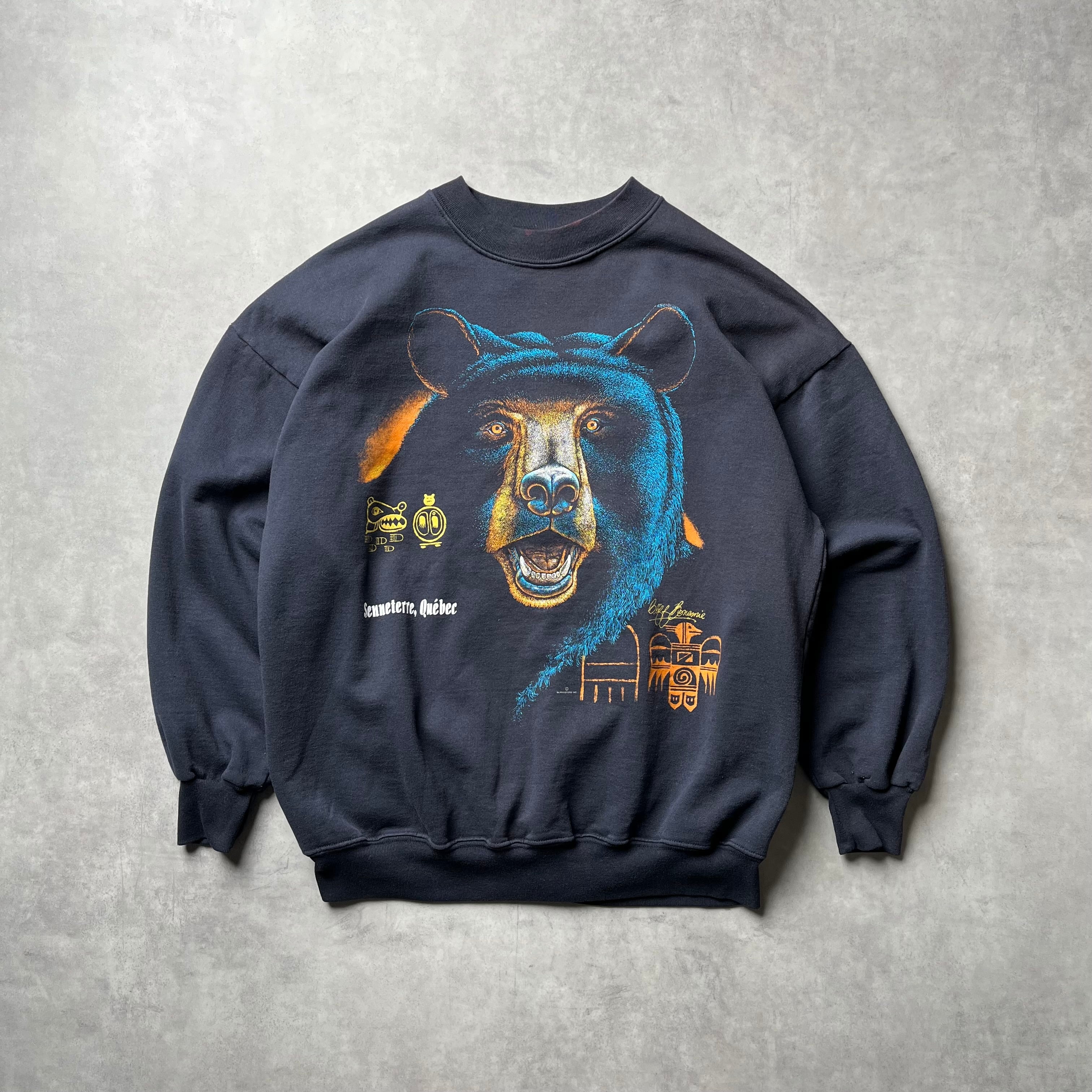 カナダ製 スウェット アニマルプリント 熊 ブラック