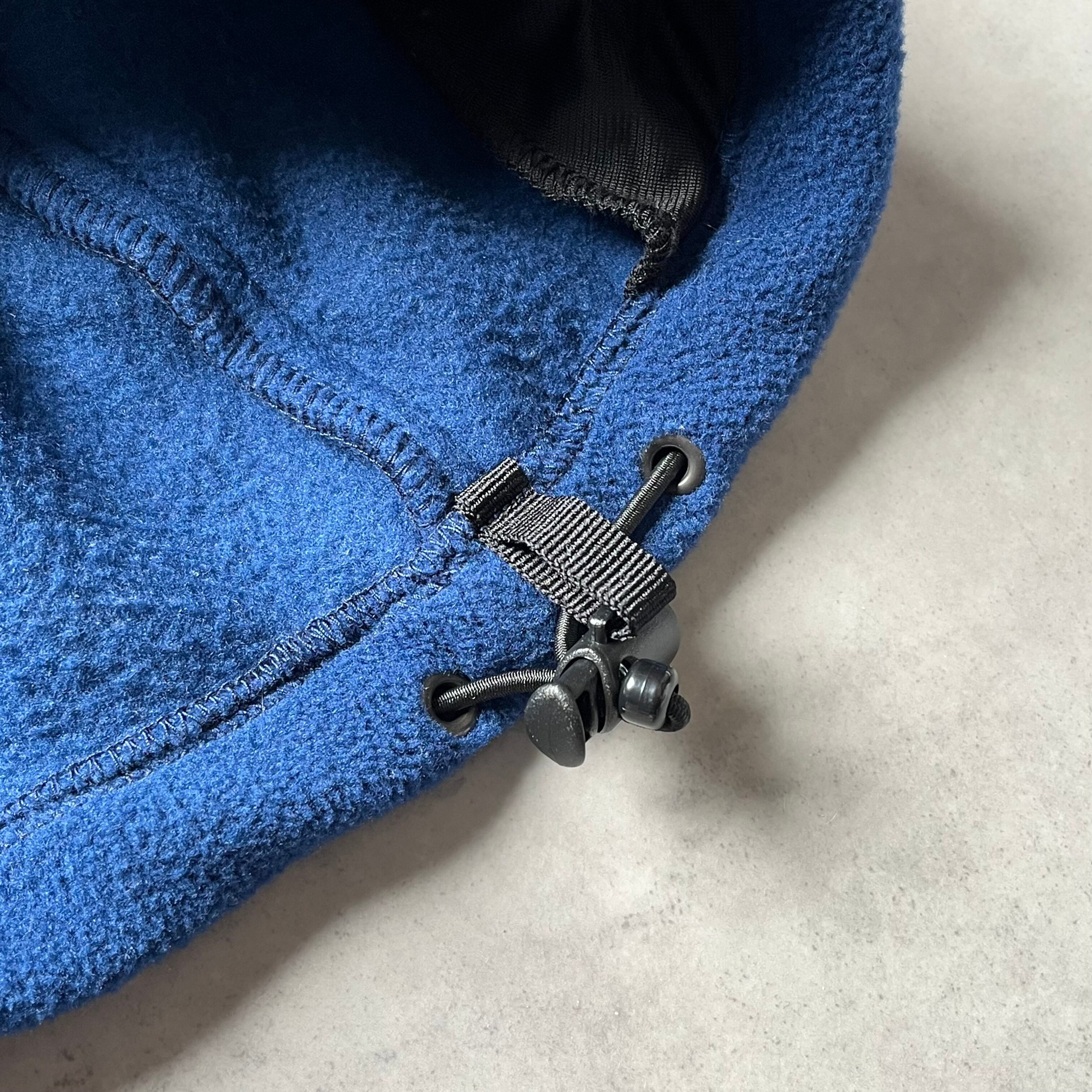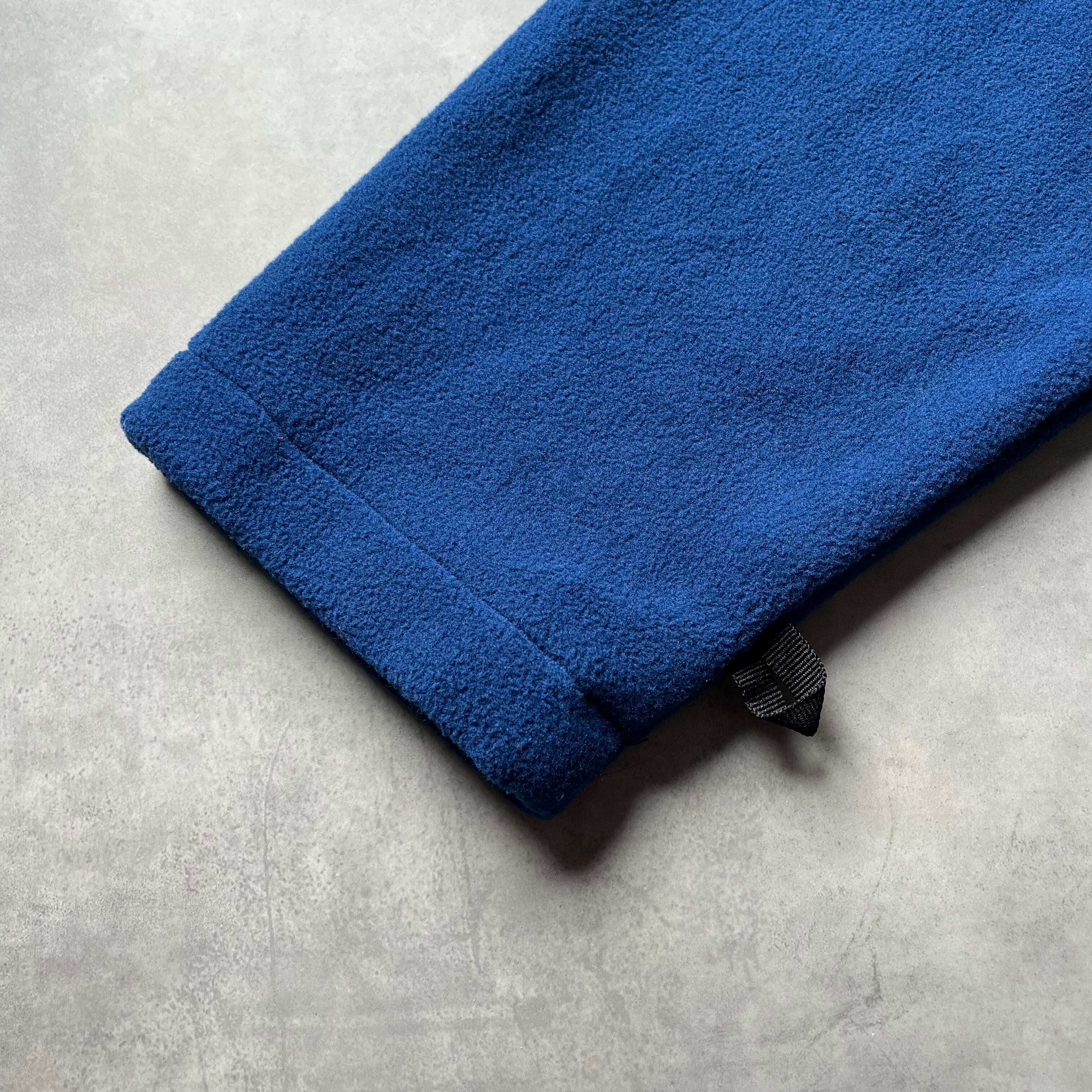 「designed for pepsi by aramark」のタグが付いた、貴重なペプシの企業ユニフォーム用フリースジャケット。 鮮やかなブルーに映えるお馴染みのラウンドロゴが、日常のコーディネートに遊び心と「通」な雰囲気をもたらしてくれる一着です。