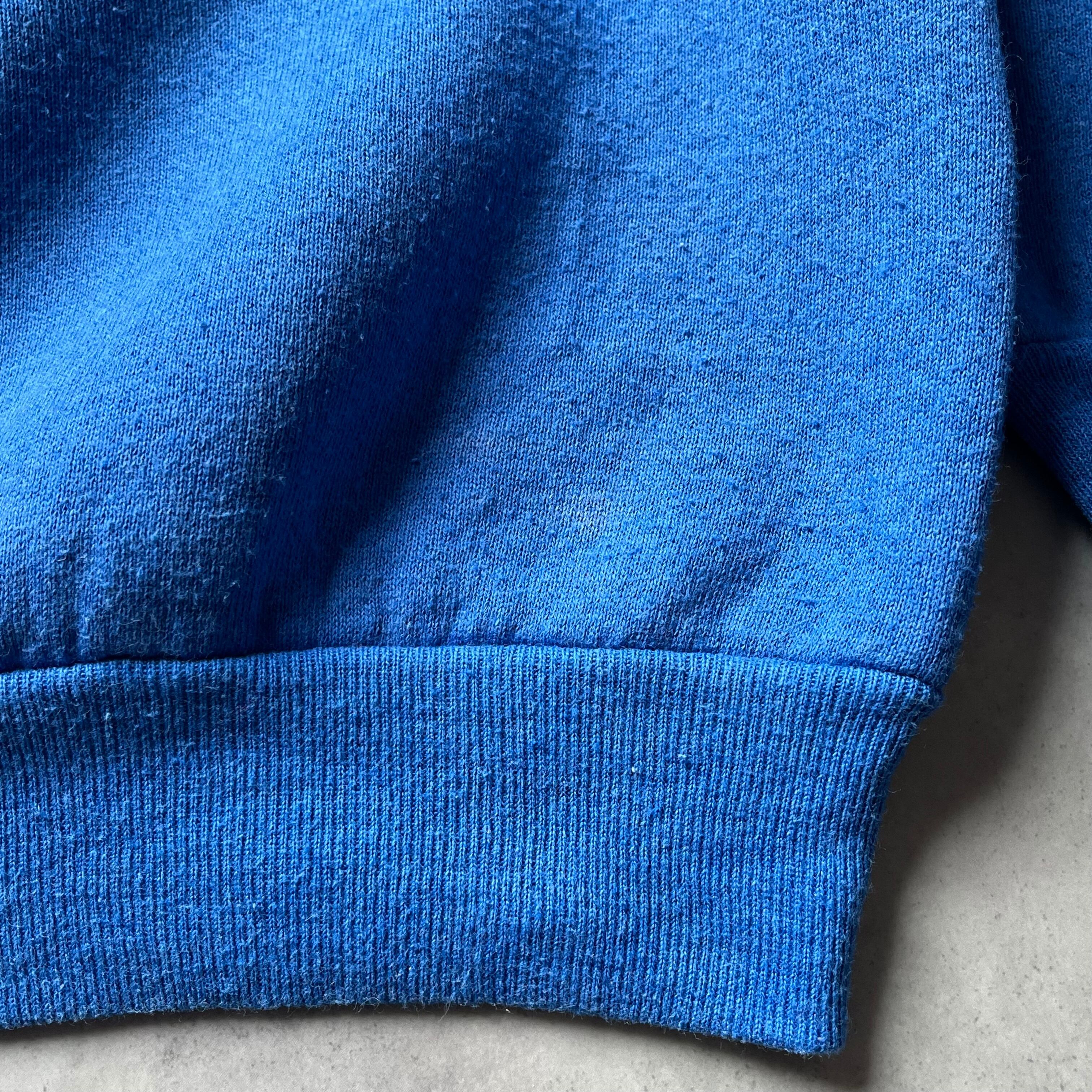 古着市場でも根強い人気を誇る「FRUIT OF THE LOOM」の、希少なMADE IN U.S.A.無地クルーネックスウェットです。 目に入るだけで気分が上がるような、鮮やかで深みのあるロイヤルブルーが特徴。無地だからこそ際立つ、ボディの質の良さと計算されたシルエットが魅力の一着です。