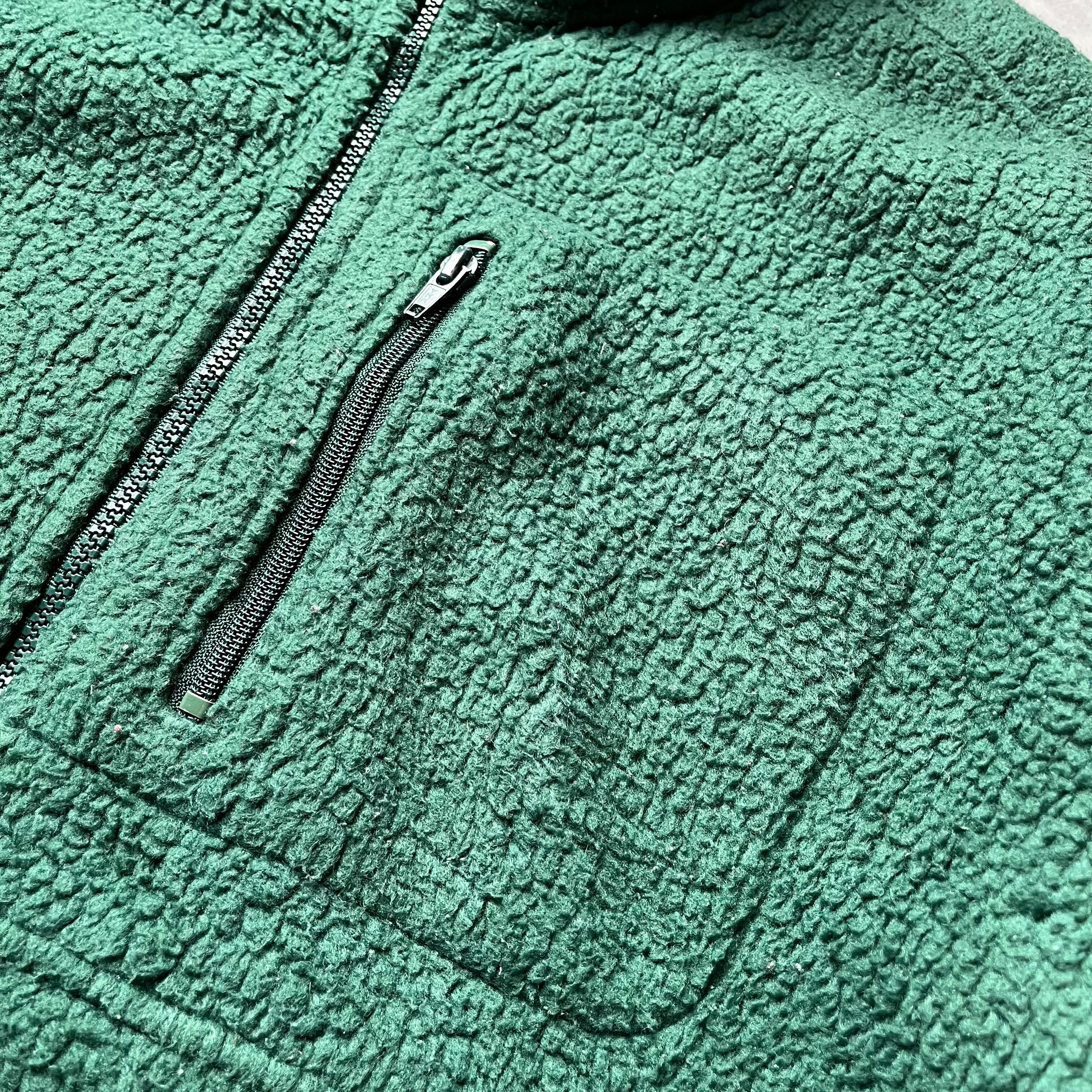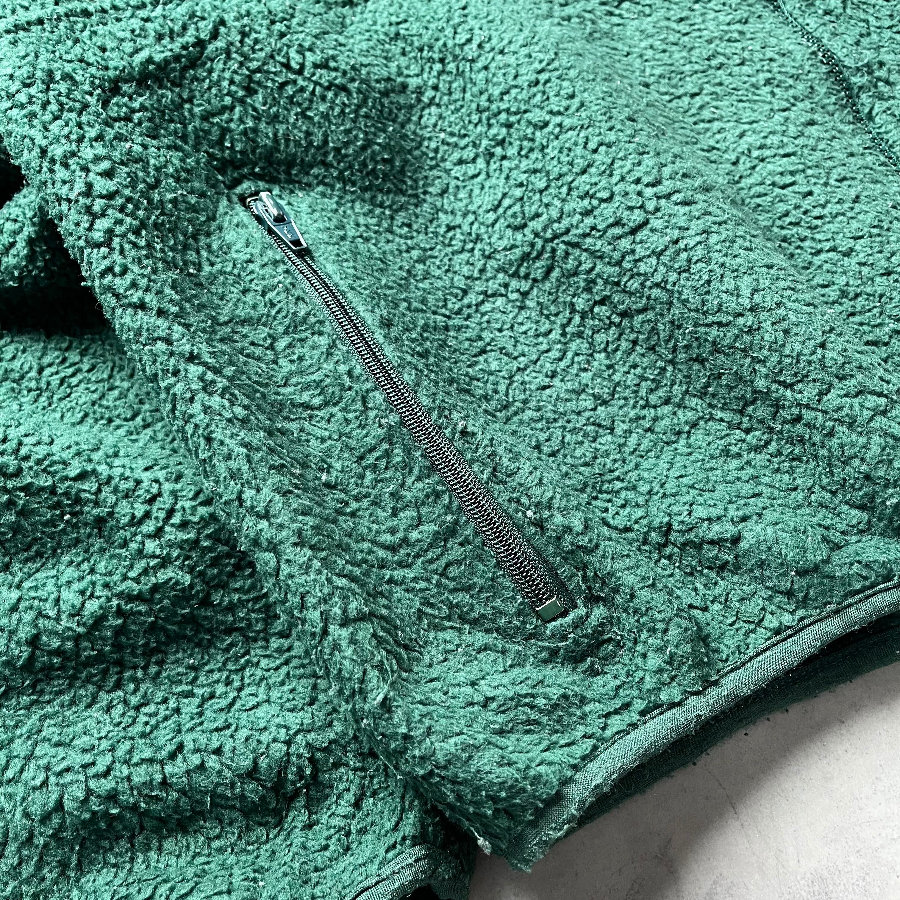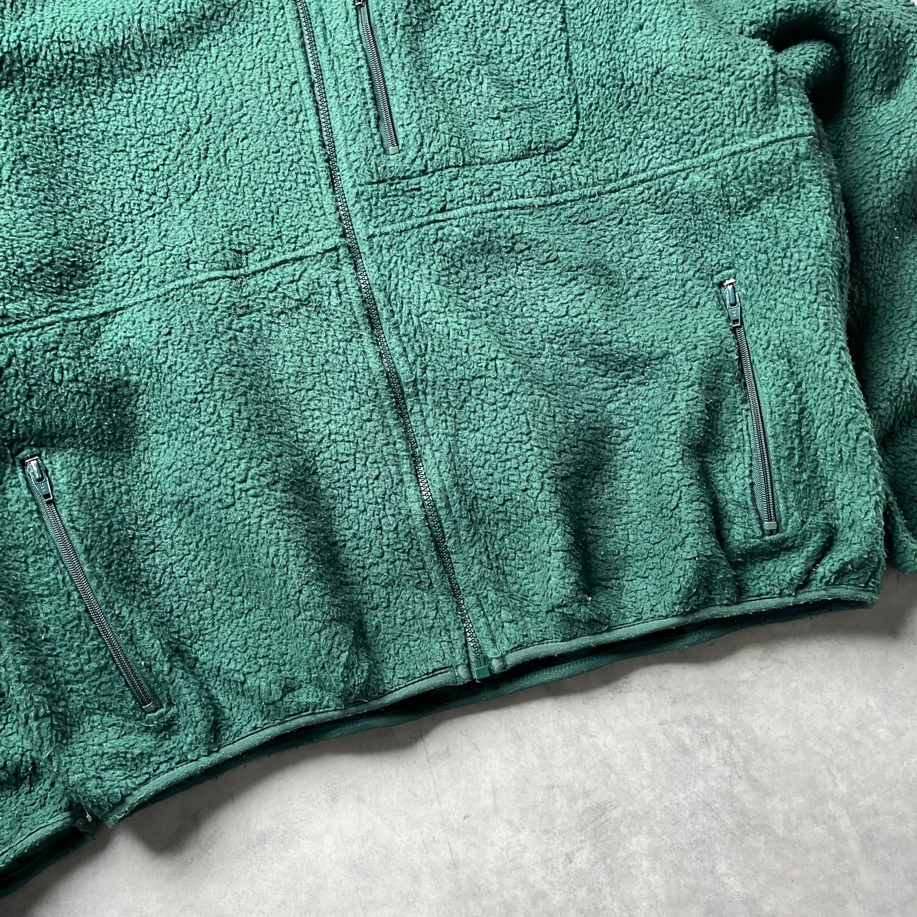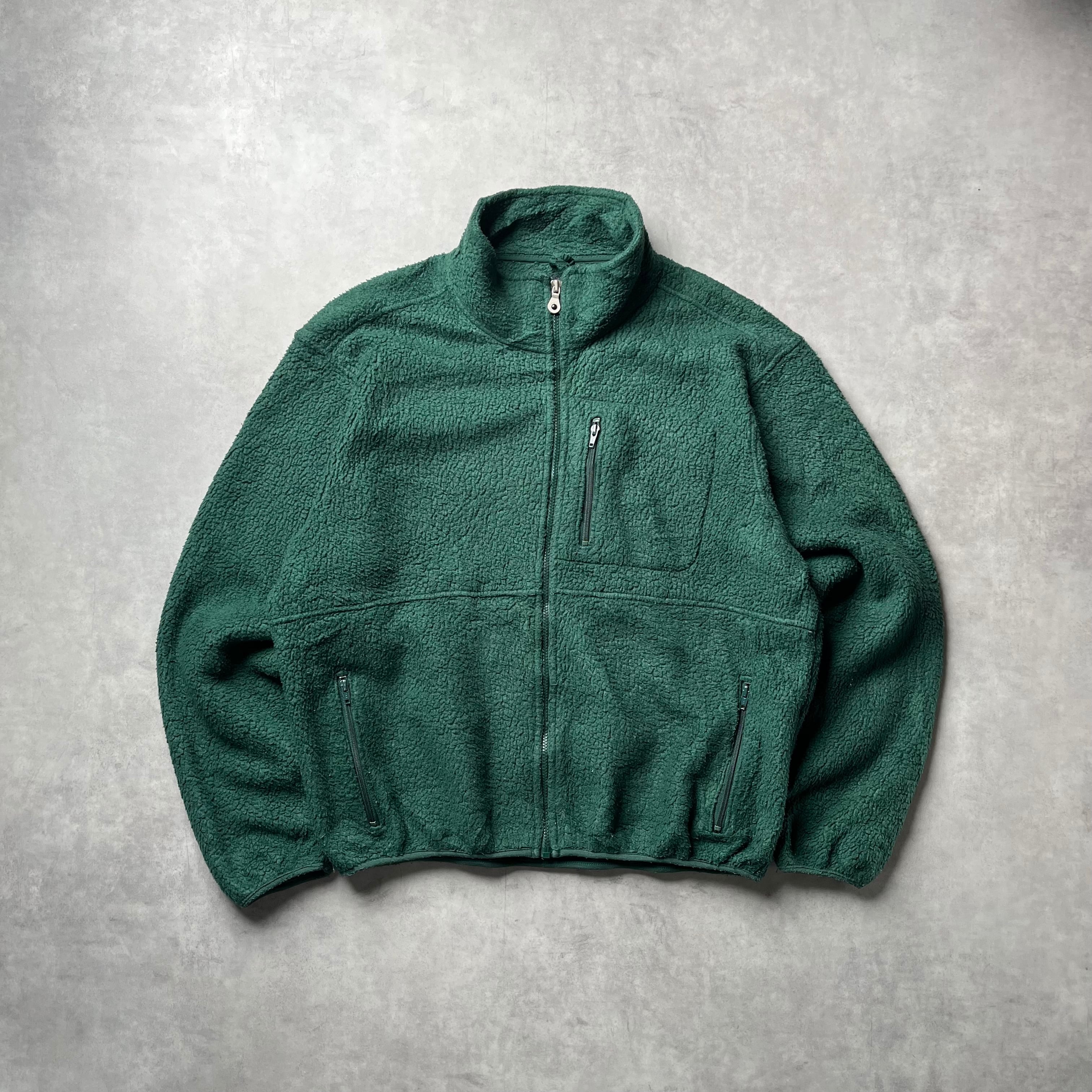 アメリカを代表する老舗「LANDS' END」の、希少な90年代USA製フルジップボアジャケットです。 深みのあるダークグリーンが大人っぽく、アウトドアシーンはもちろん、街着としても洗練された存在感を放つ一着。