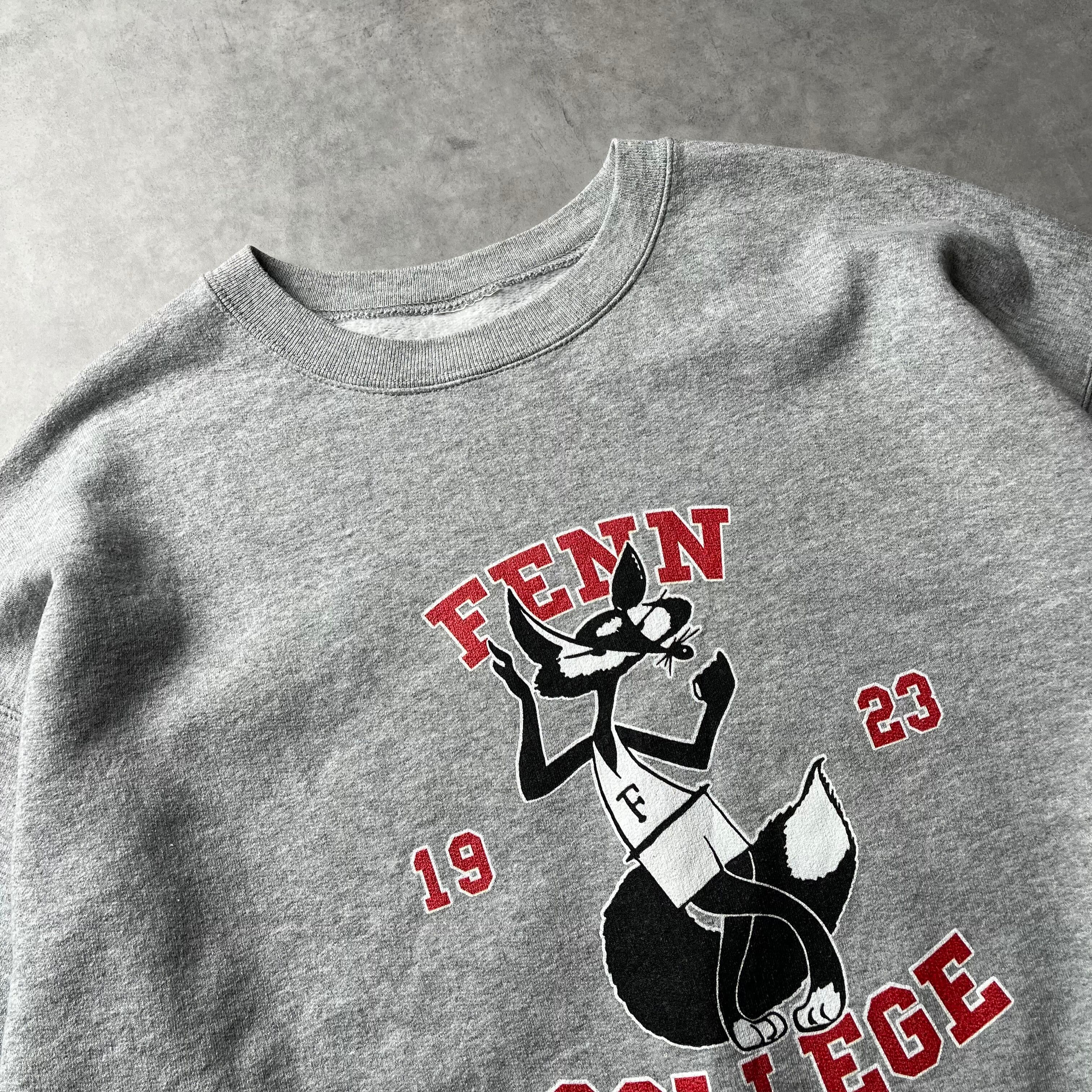 オハイオ州クリーブランドにかつて存在した「Fenn College」のロゴが映える、ヴィンテージライクな一着です。 大学の創設年である「1923」を掲げたクラシックなデザインに、どこか憎めない表情のキツネのキャラクターが絶妙な「抜け感」をプラスしてくれます。