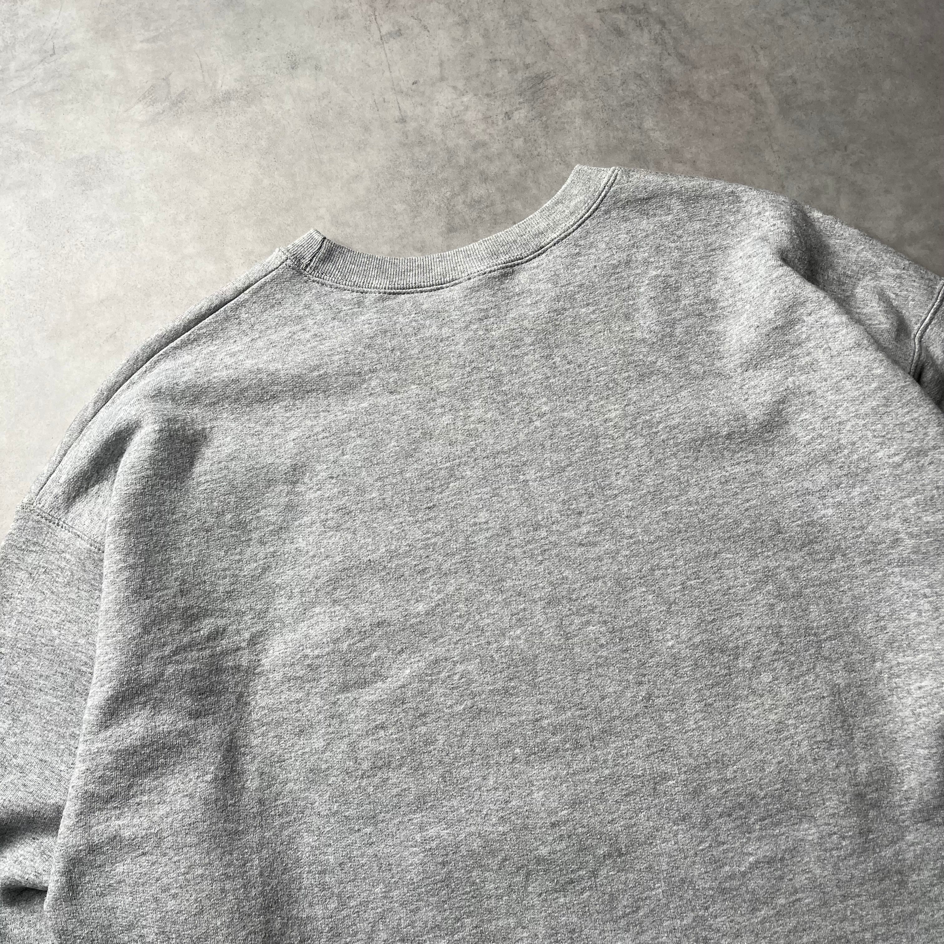 「黒のスラックス」や「レザーシューズ」を合わせて、少し大人っぽく外したり、 「濃紺のデニム」で王道のアメカジを楽しむのも間違いありません。一枚でしっかりと主役を張れる、ちょうどいい存在感のスウェットです。