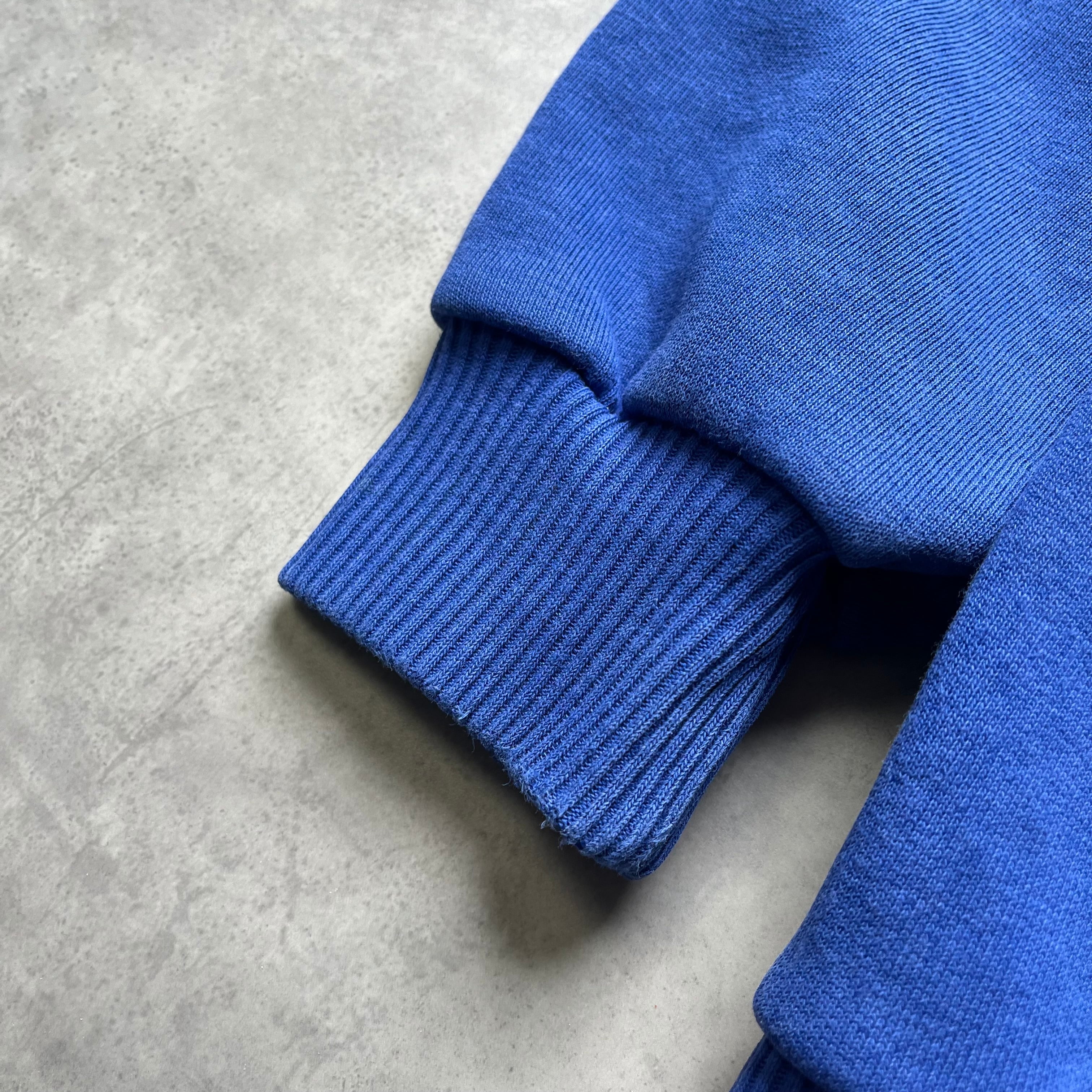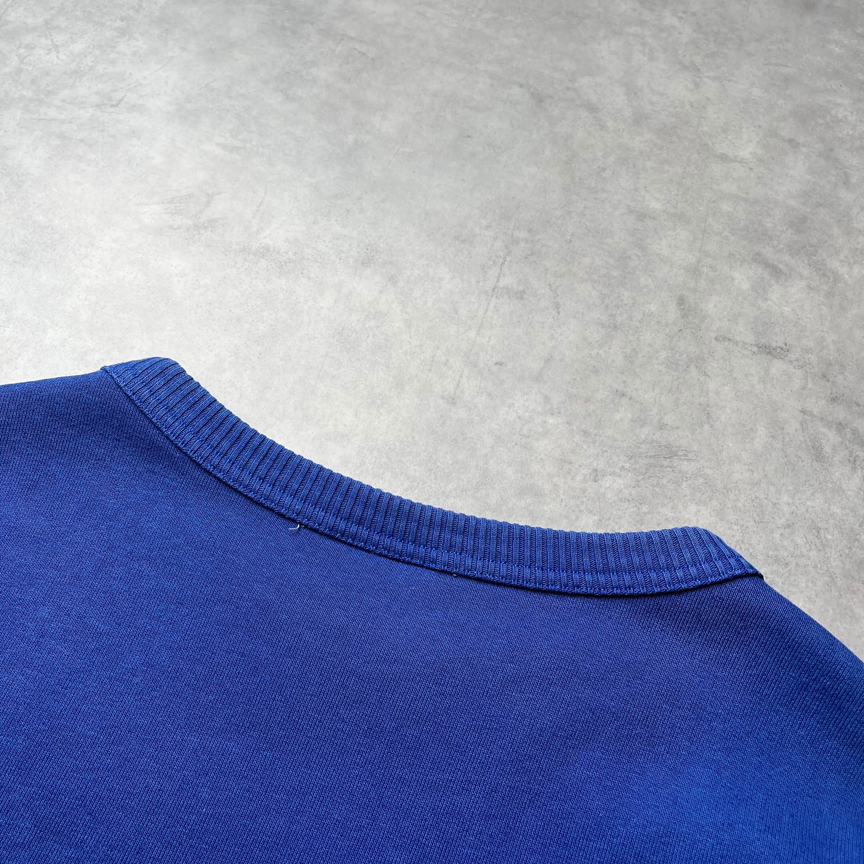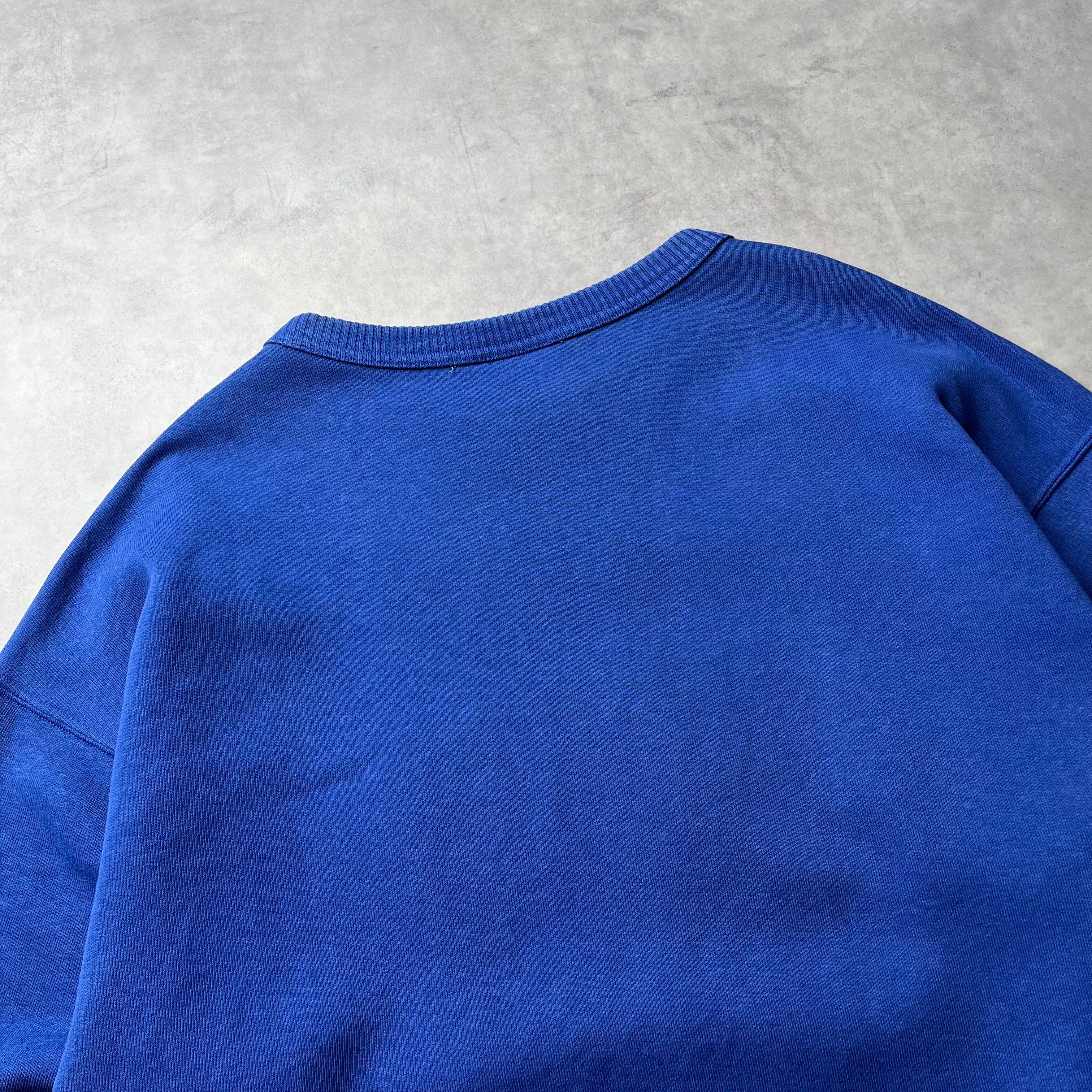 90年代から00年代にかけてのSwingster製スウェット。 一見シンプルな無地スウェットですが、特筆すべきはその「色」。青の中にほんのり紫が混ざったような、ヴィンテージ好きに人気の「ナス紺」に近い絶妙なカラーリングが、圧倒的な存在感を放ちます。