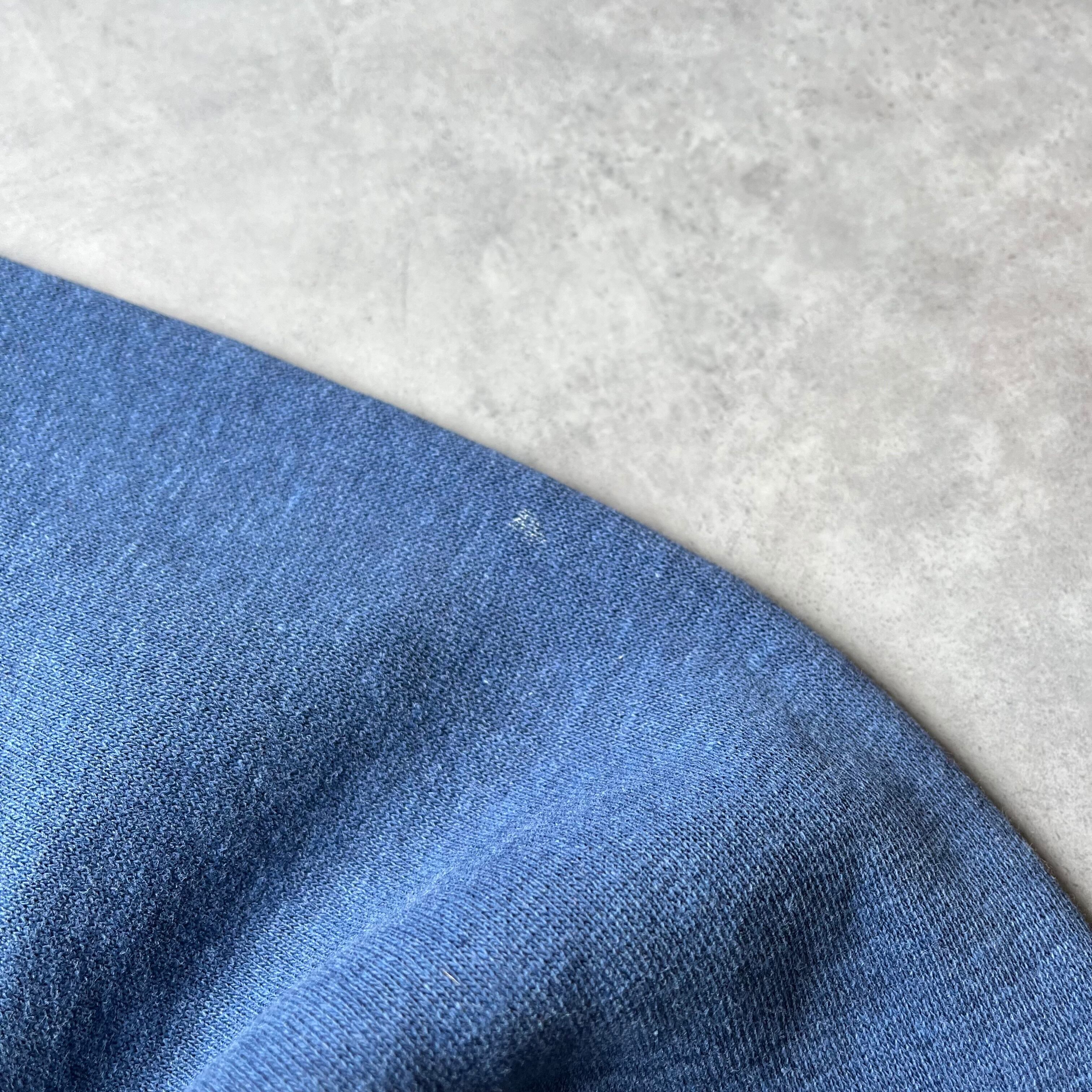 コットン50%・ポリエステル50%の混紡素材は、何十年経っても型崩れしにくく、着込むほどに馴染む「育てるスウェット」です。