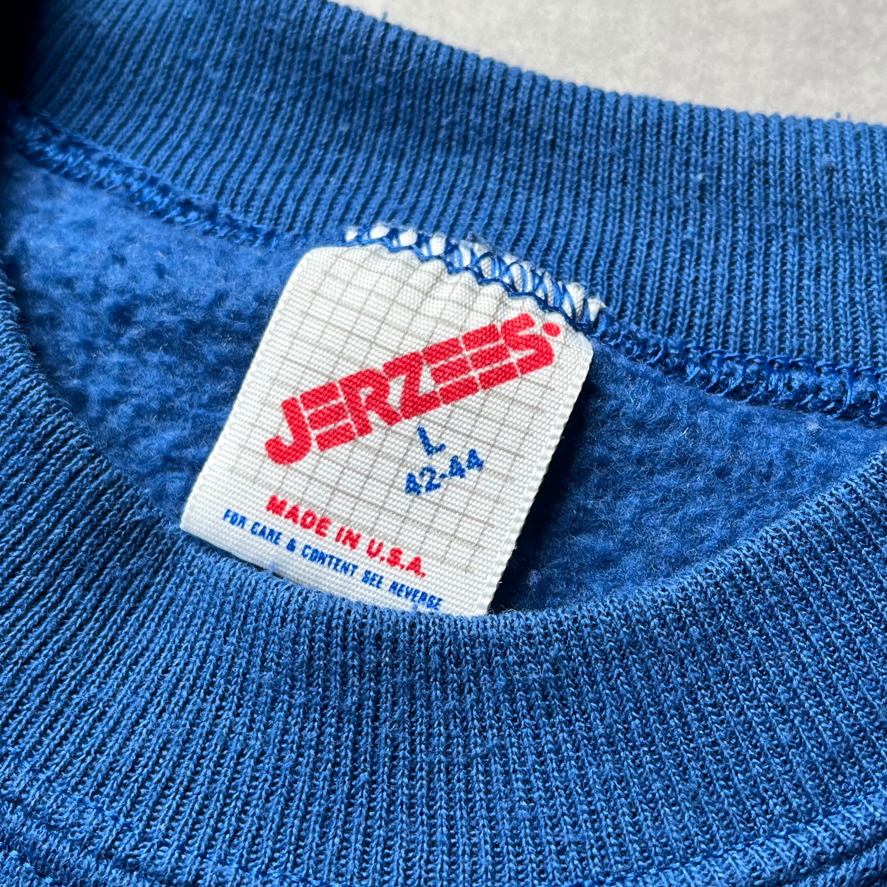 90年代のJERZEES社製、Made in USAのラグランスウェットです。 コットンポリの柔らかい質感、レイヤードに最適な薄手の生地感になっています。