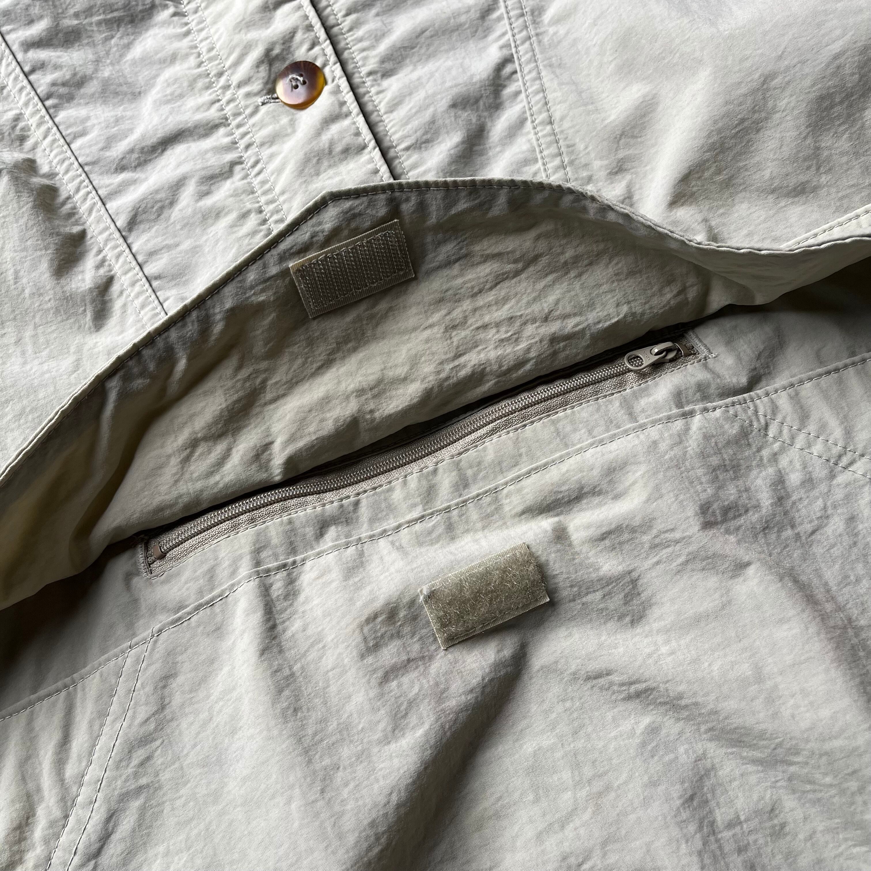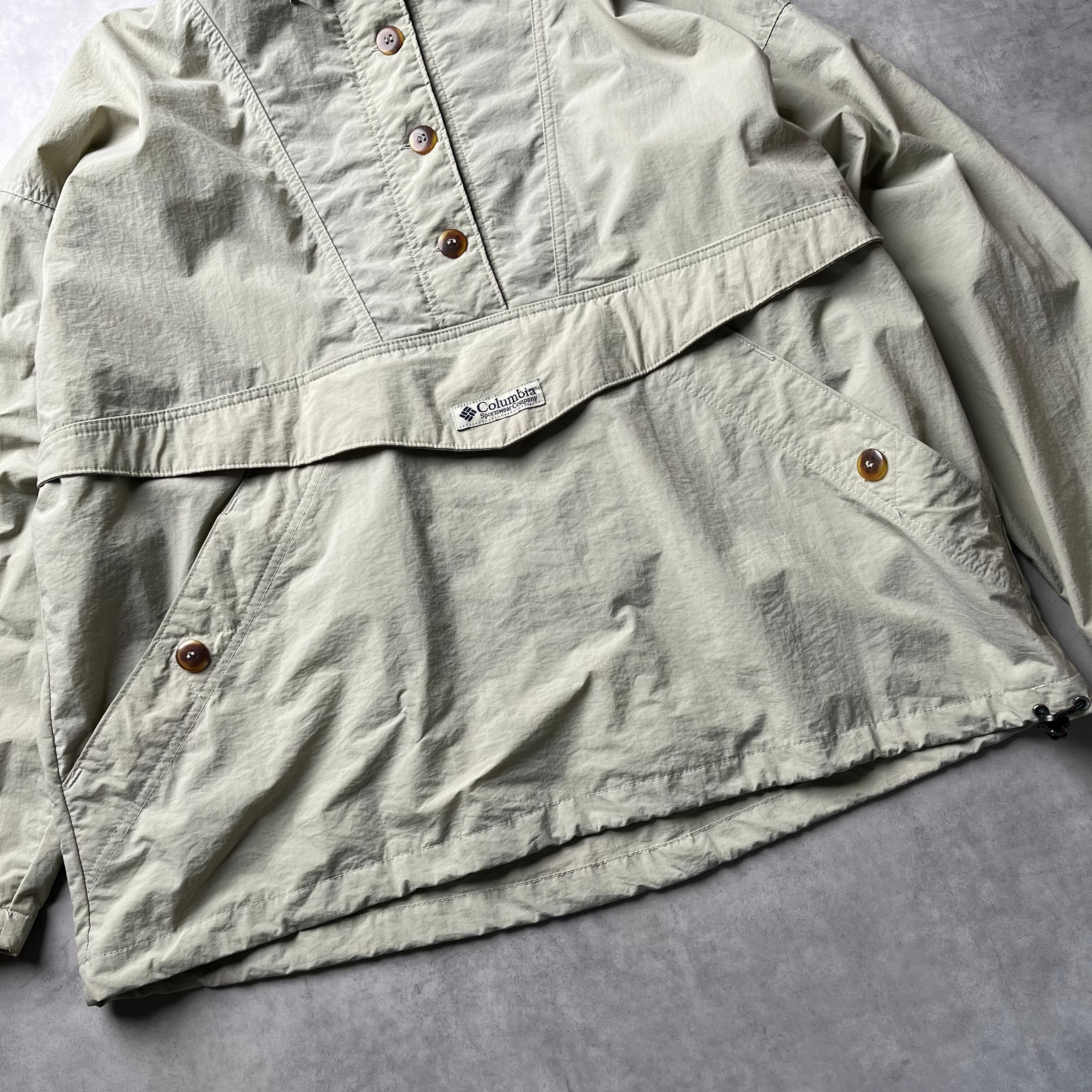 ミリタリーライクなベージュのボディに、首元の多ボタンデザインが映える一着。現行のコロンビアにはない、無骨さとレトロな雰囲気が共存したアウトドアウェアです。