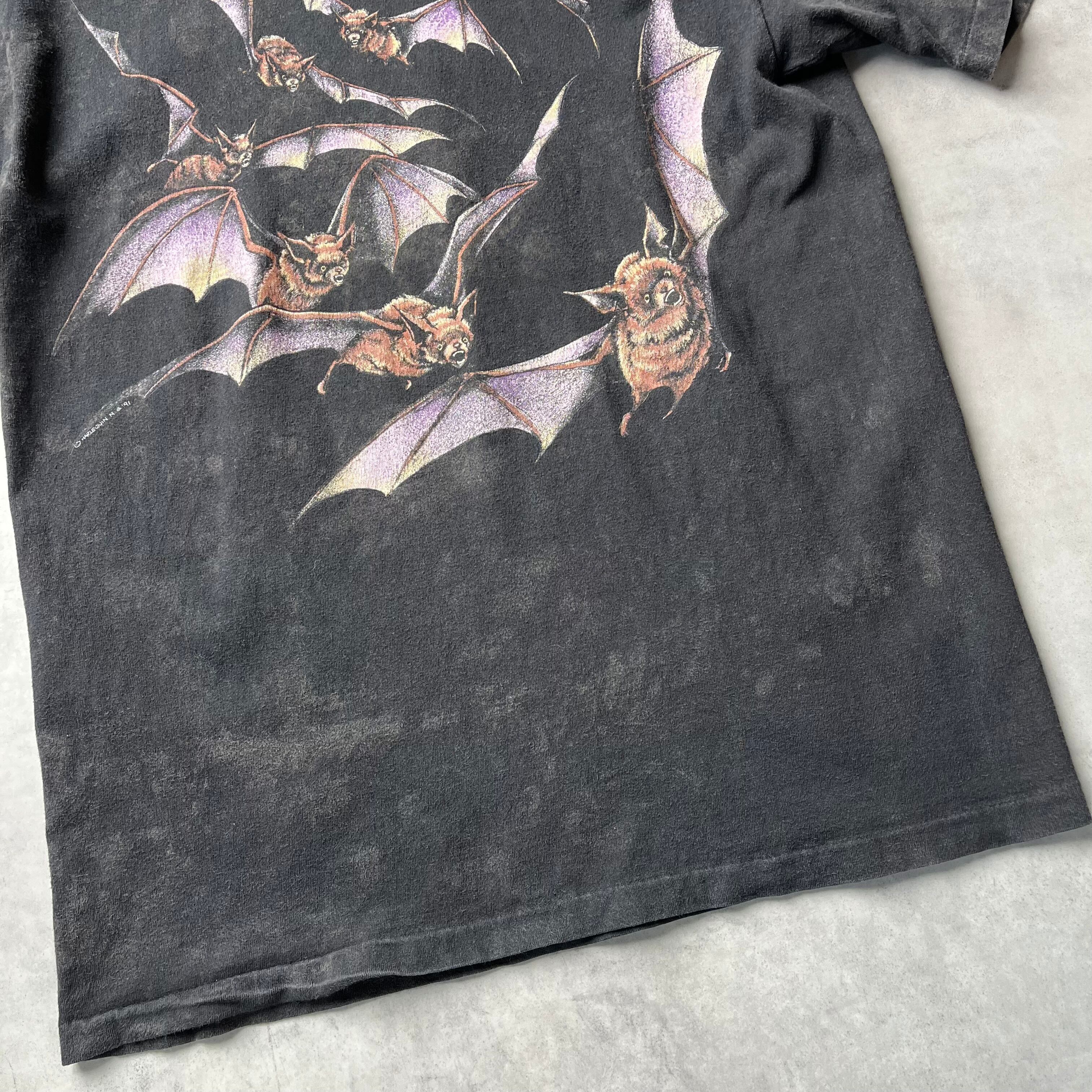 1991年にHARLEQUINが手掛けた、アニマルTシャツの中でも異彩を放つコウモリ柄の一着です。