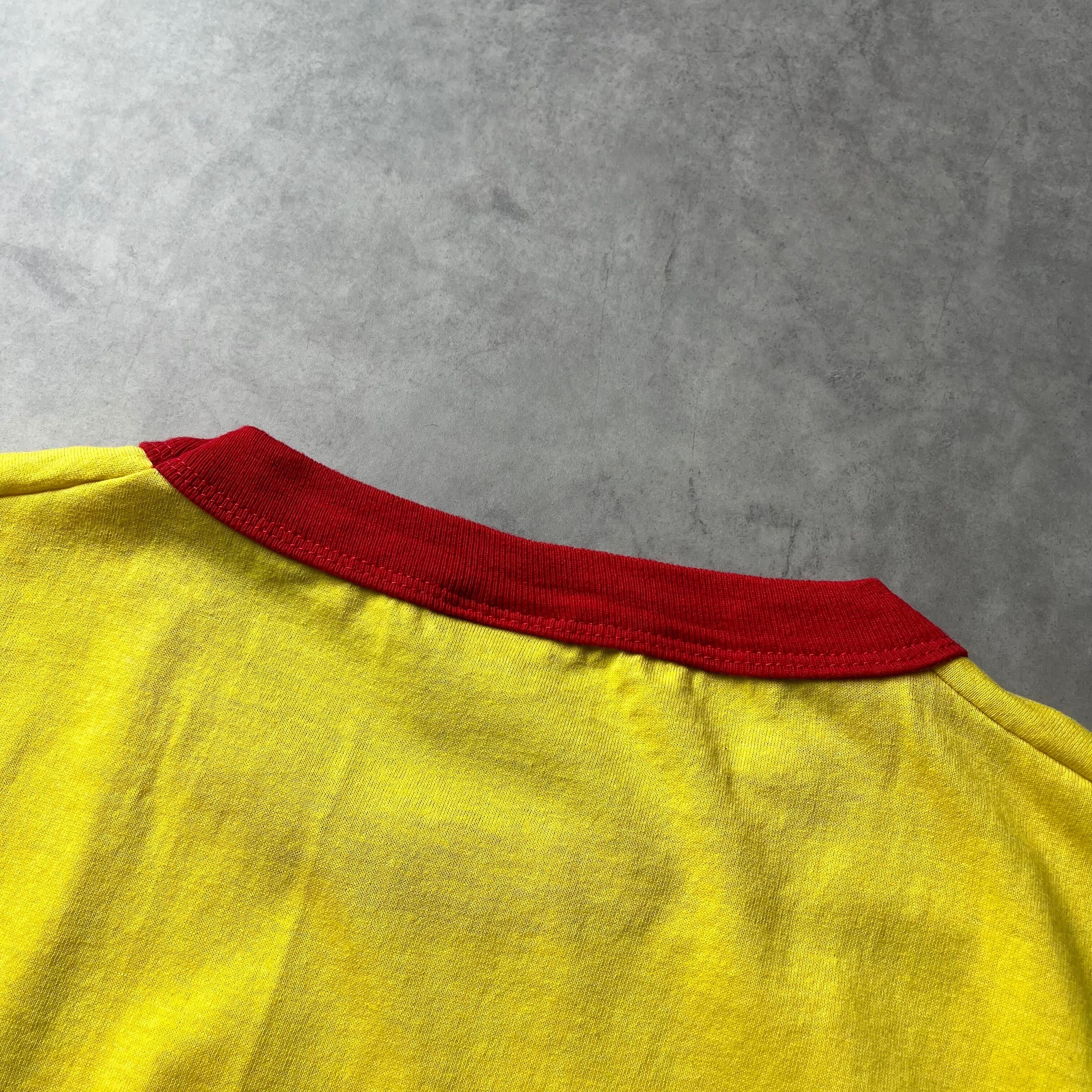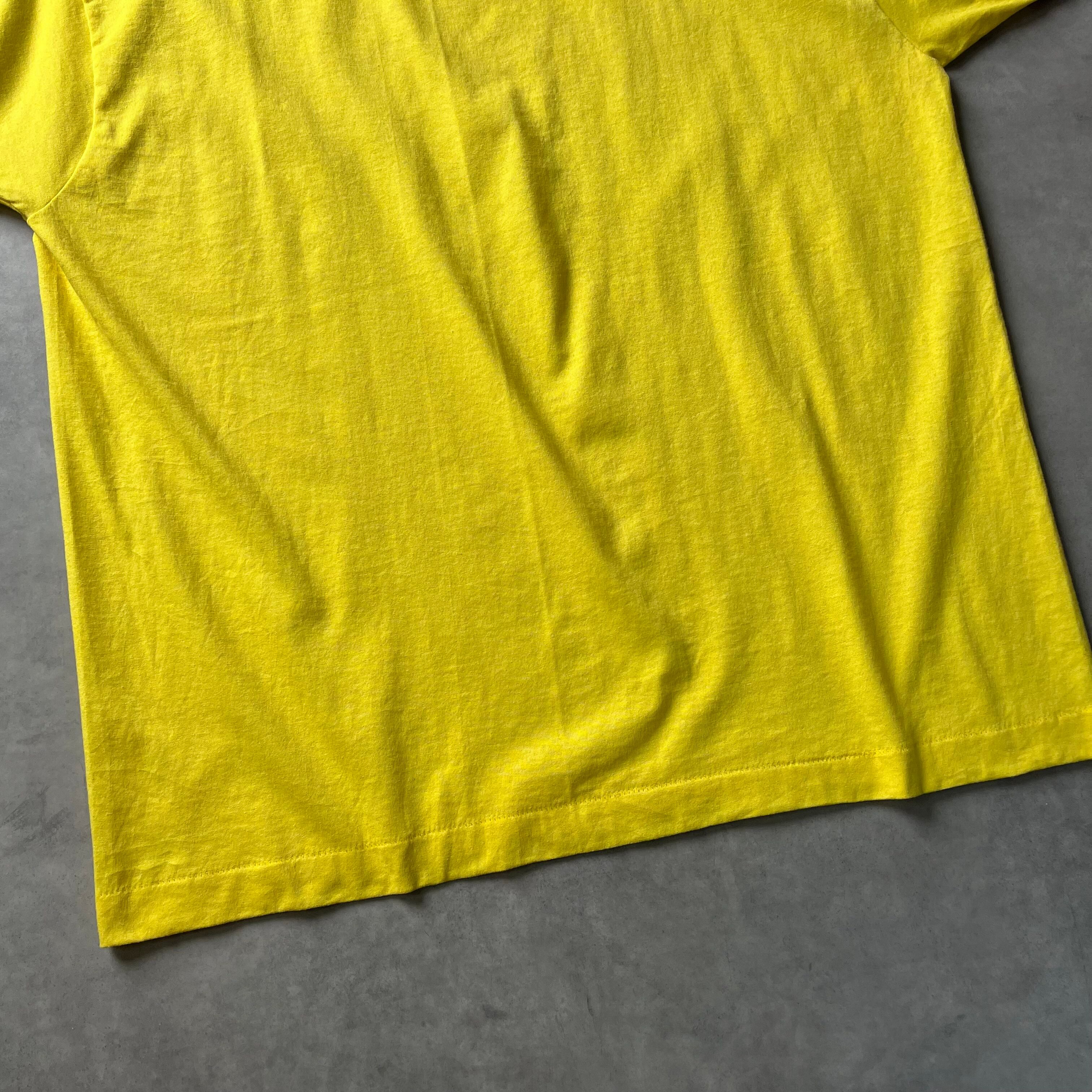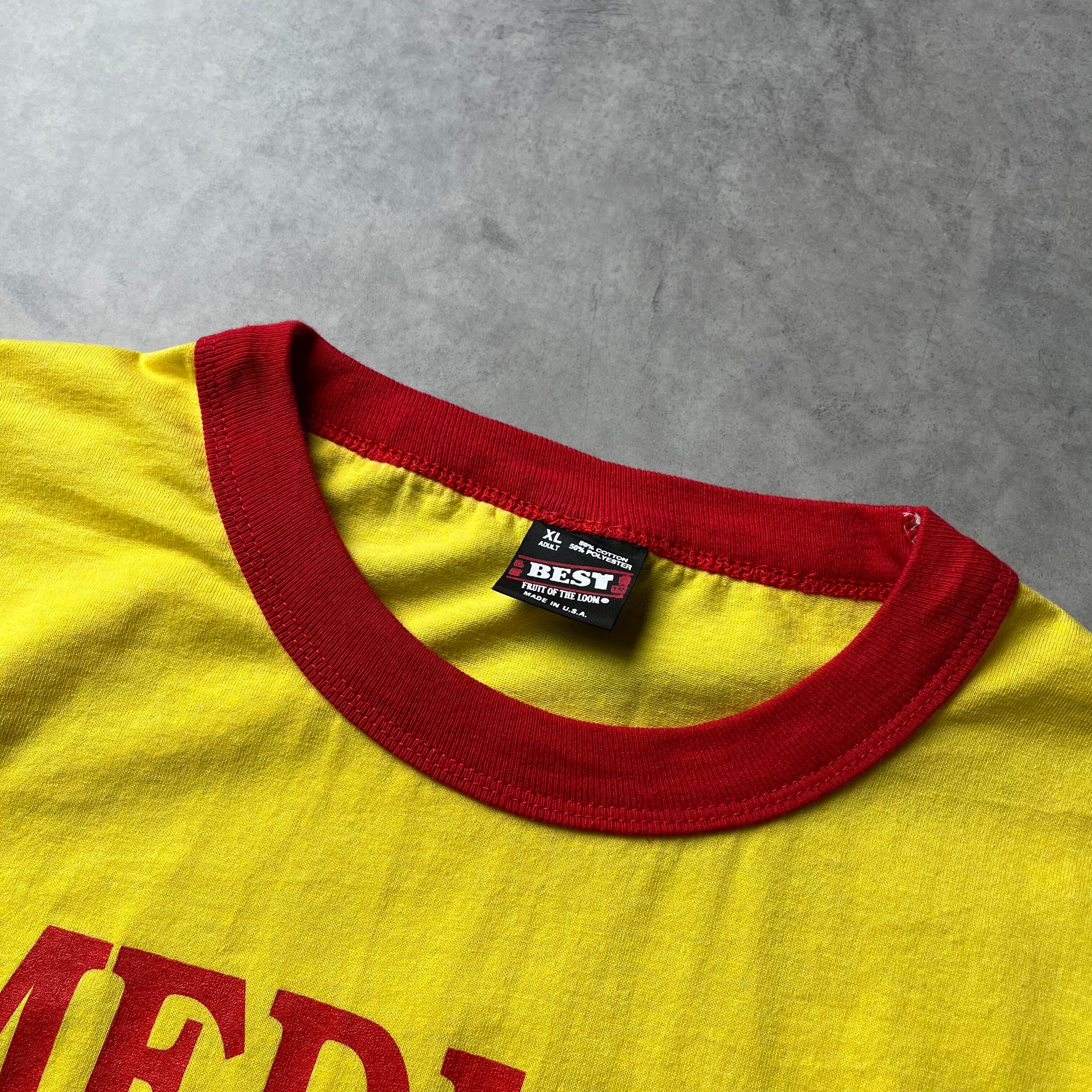 発色の良いマスタードイエローに、パキッとしたレッドのネック&スリーブ。フロントには「MEDICAL SERVICES」の直球なレタリング。当時のアメリカの公共機関やワークウェアの空気感をそのまま閉じ込めたような、いなたい雰囲気が魅力です。