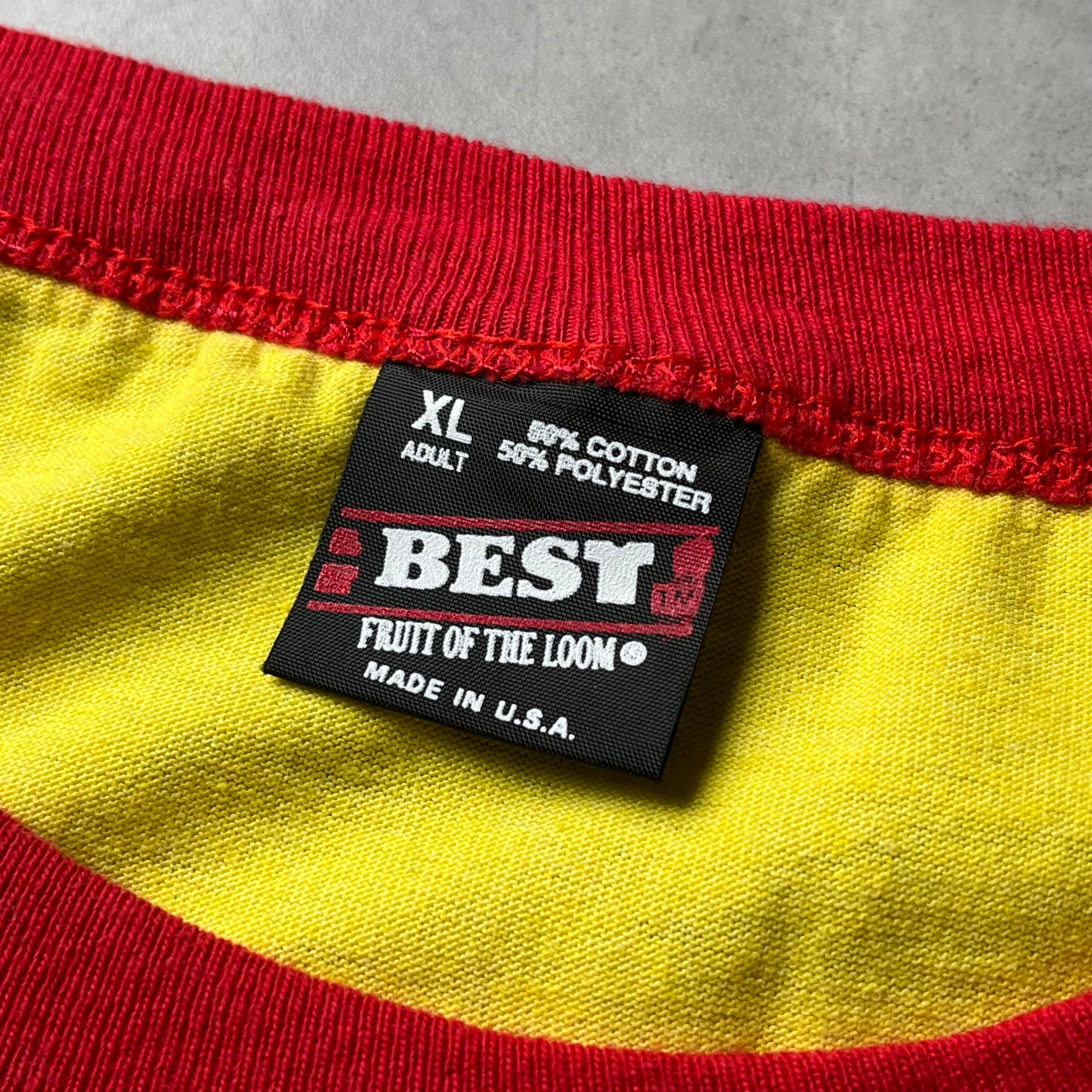 1990年代製、Fruit of the LoomのBESTボディを使用したリンガーTシャツです。
