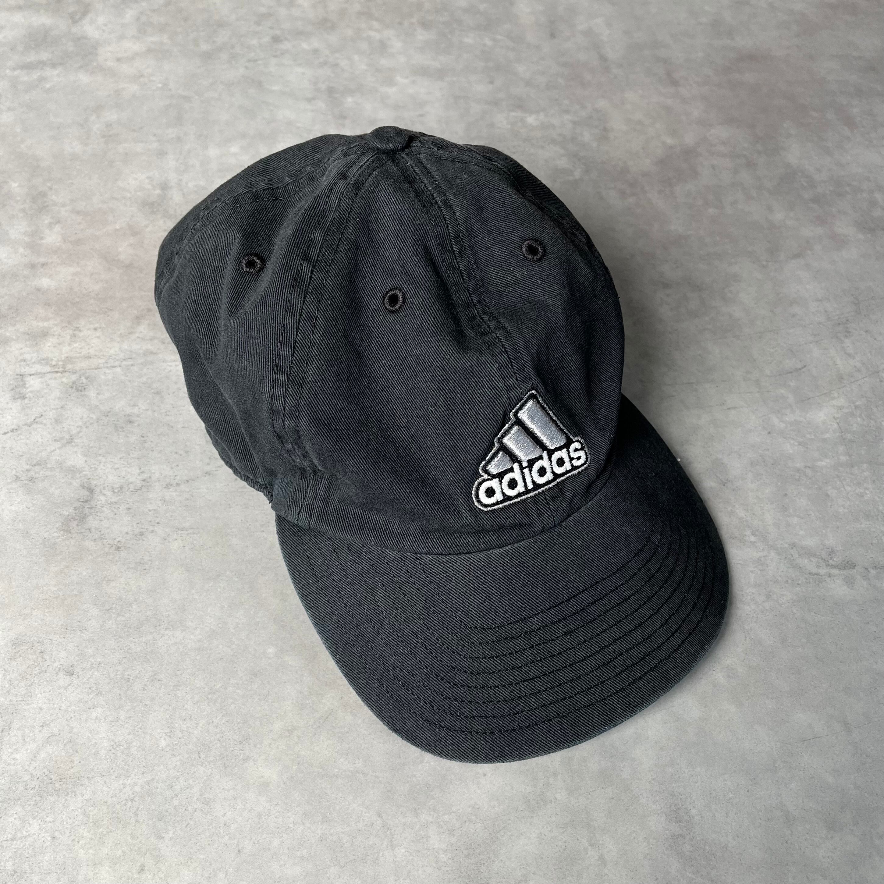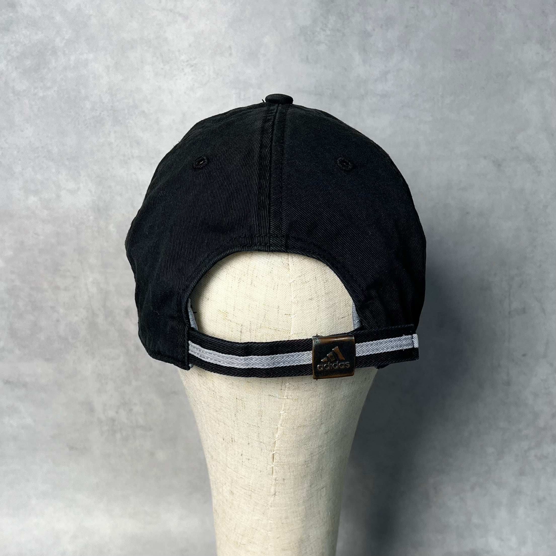 ブラック×グレーのストイックな配色が目を引く、アディダスの6パネルキャップです。