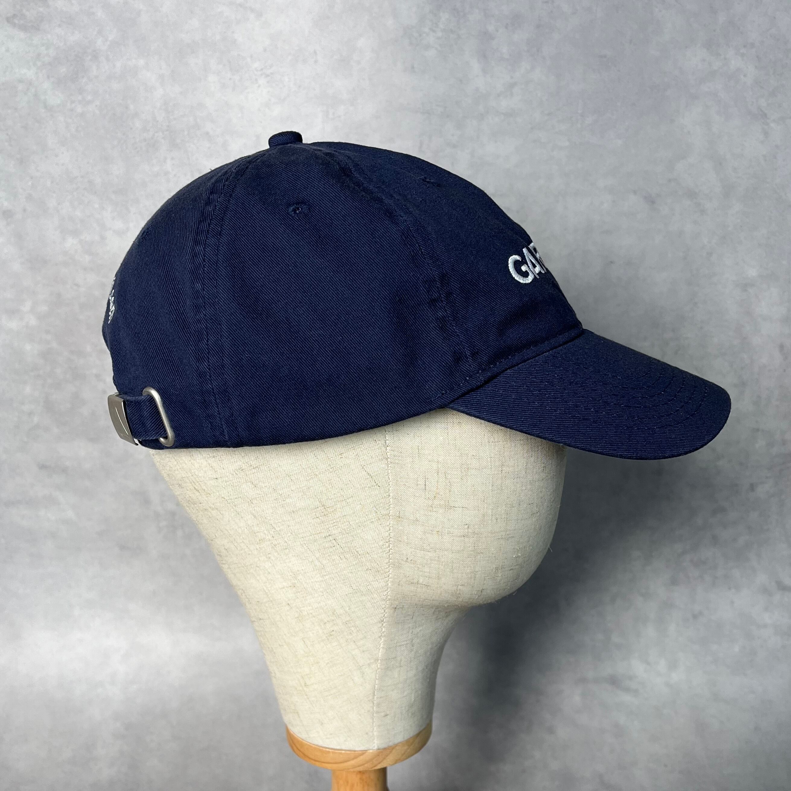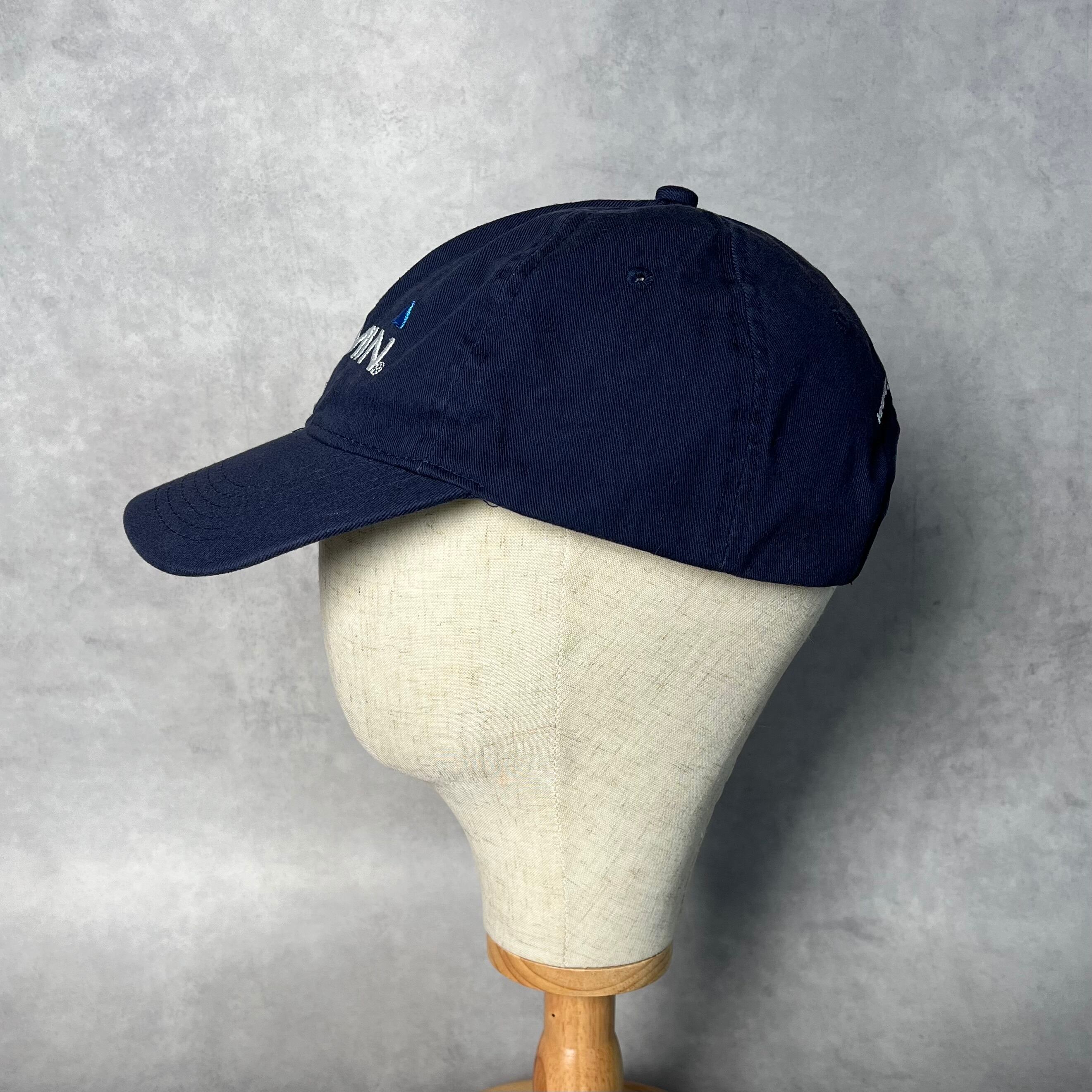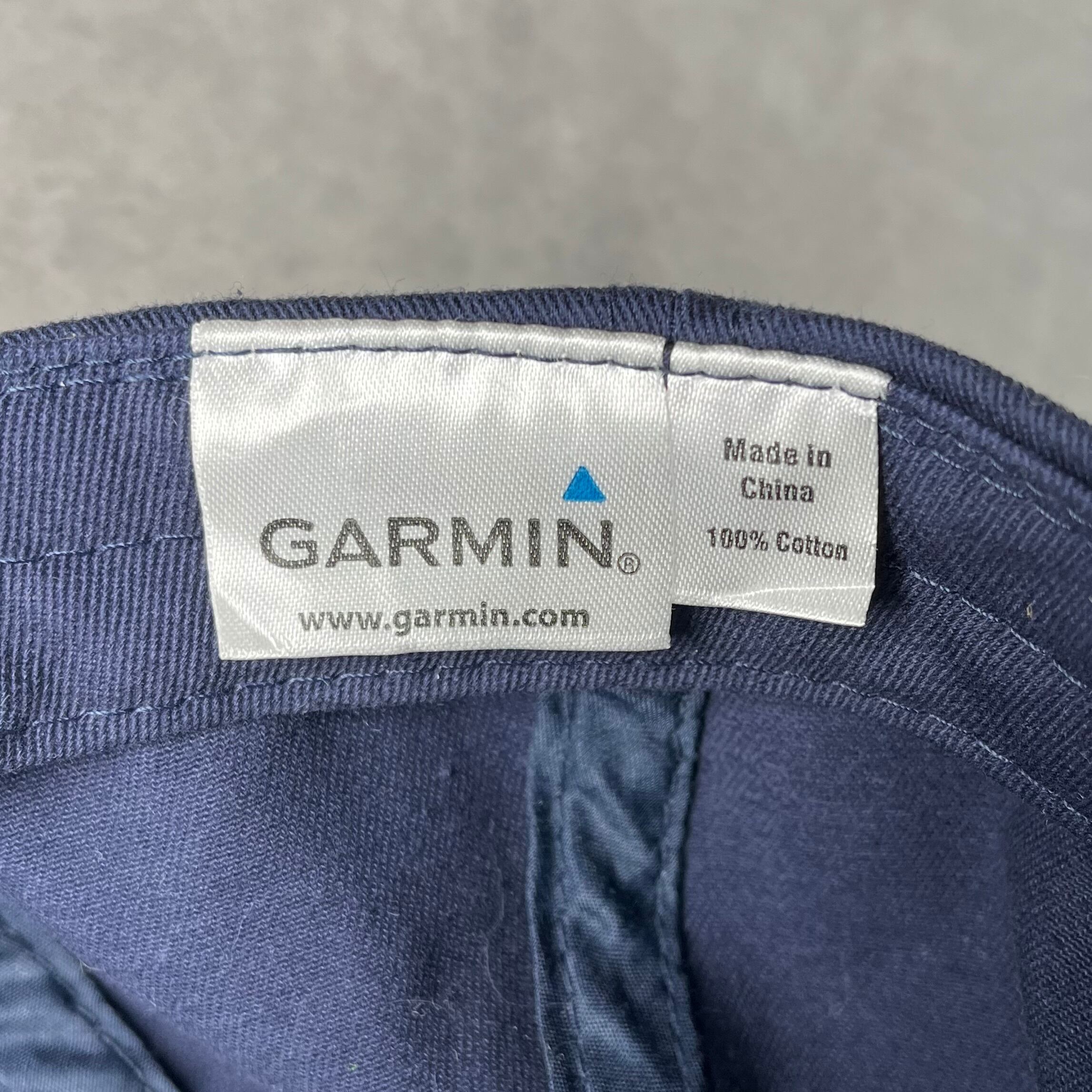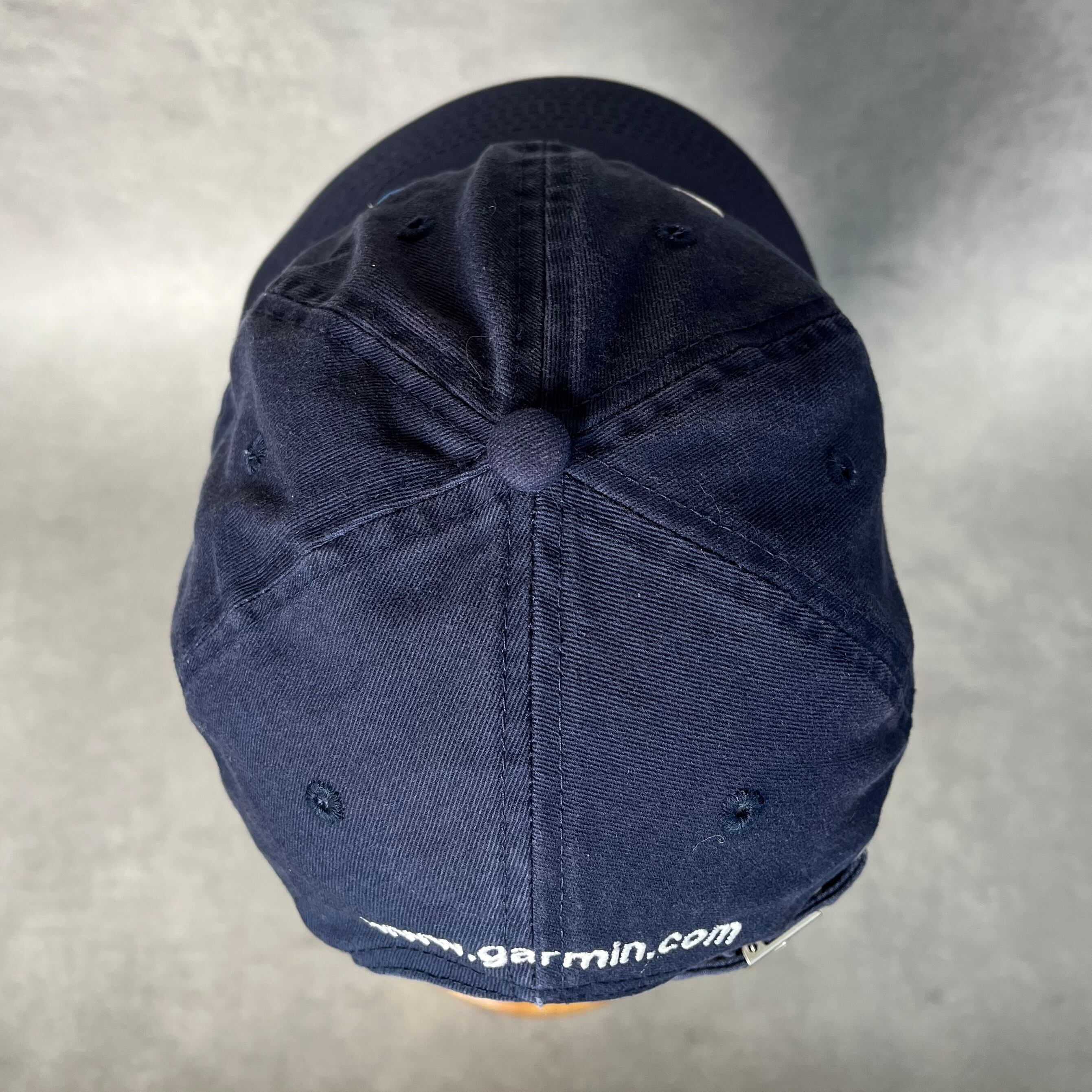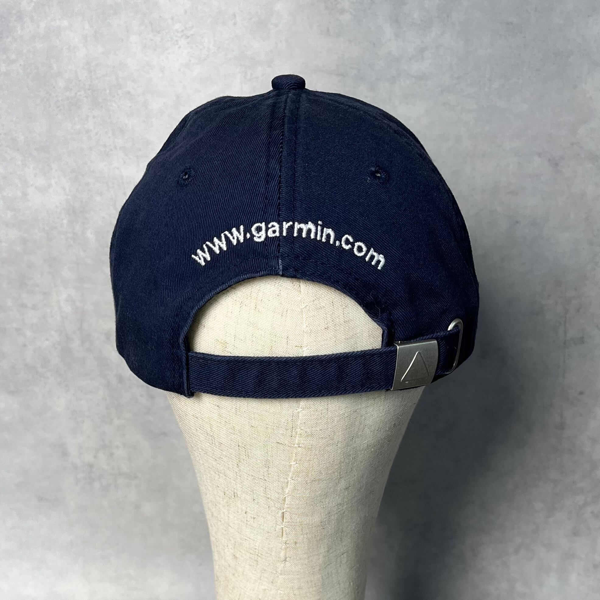 落ち着いたネイビーのボディに、ホワイトの刺繍が映えるクリーンなルックス。バックには「www.garmin.com」のURLが刺繍されており、テック企業らしい空気感を醸し出しています。